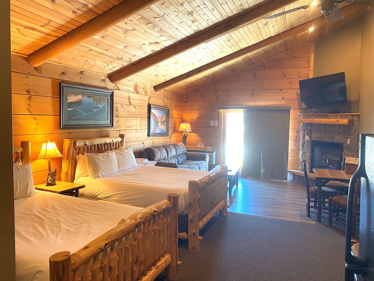 Ono što gosti vole kod ovih jedinica je da imaju veliku, dva kupatila 768 SF jedinica na dva sprata s čajnom kuhinjom, dnevni boravak s dnevnim boravkom s vlastitim televizorom s ravnim ekranom iznad udobnog kamina. Imajte na umu da ćete čuti komšije u susjedstvu kada ste u dupleks brvnari. Potkrovlje u ovoj brvnari ima bračni krevet, krevet na sprat i kupatilo s WC-om. Ima i kauč za spavanje.