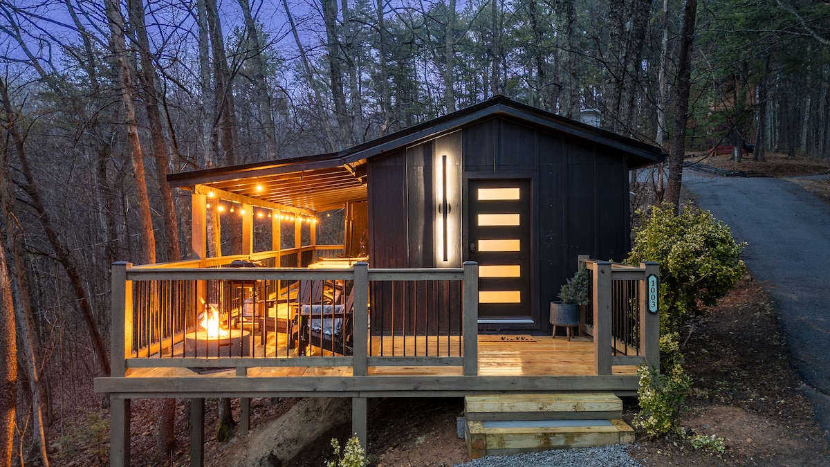 Dobro došli u udobnu planinsku brvnaru gdje tiha šuma, svjetlost vatre i svjež zrak planine Smoky određuju ton za opuštajući boravak u blizini svega. - Za 6 osoba | 2 spavaće sobe | 3 kreveta | 1 kupatilo – Hidromasažna kada s pogledom na planine - Unutrašnji kamin na drva i električni kamini - Terasa s ognjištem, visećom ležaljkom i vanjskim sjedištima - Prikladno za porodice s krevetićem, igrama, arkadama i tematskom sobom – Kuhinja, mašina za pranje i sušenje veša, Wi-Fi i namjenski radni prostor