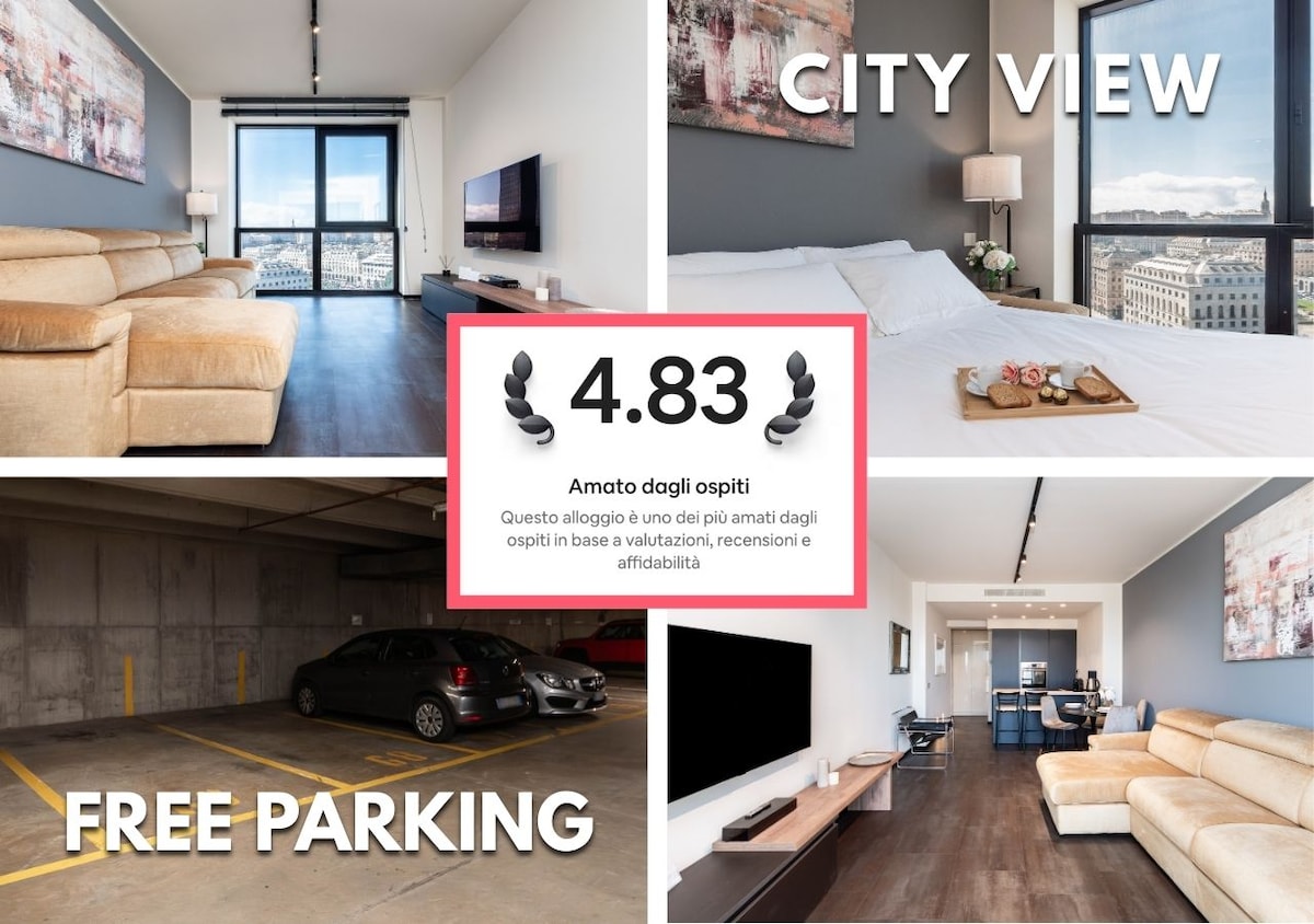 95 sm 2 spavaće sobe s pogledom na more i grad na 17. spratu (lift) iza glavnog trga Piazza De Ferrari i 11 minuta hoda do akvarijuma. Dnevni boravak s 2 kauča na razvlačenje i kuhinjom s štednjakom, mikrovalnom pećnicom, mašinom za pranje suđa, mašinom za pranje veša. 2 spavaće sobe s bračnim krevetom i velikim TV-om s Netflixom. Kupatilo s tušem - Besplatan brzi Wi-Fi - Osigurani podzemni parking pored vrata 22 eura/dan. Supermarket u prizemlju. CITRA: 010025-LT-1771
