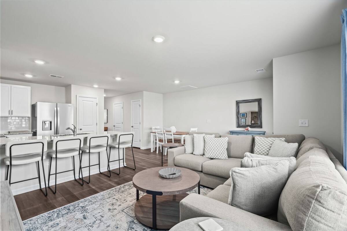 Birdie Beach House is a 1418 sq. ft, 3-bedroom, 2.5 bath townhouse just 7 mins from the beach! It features a spacious living area with a 55" inch Roku TV, large dining peninsula, fully equipped kitchen, upstairs bedrooms, a primary suite with a king bed, double vanity, and stand-up shower, two queen bedrooms, a tub/shower combo, full-size washer/dryer, complimentary beach gear, and a single-car garage.