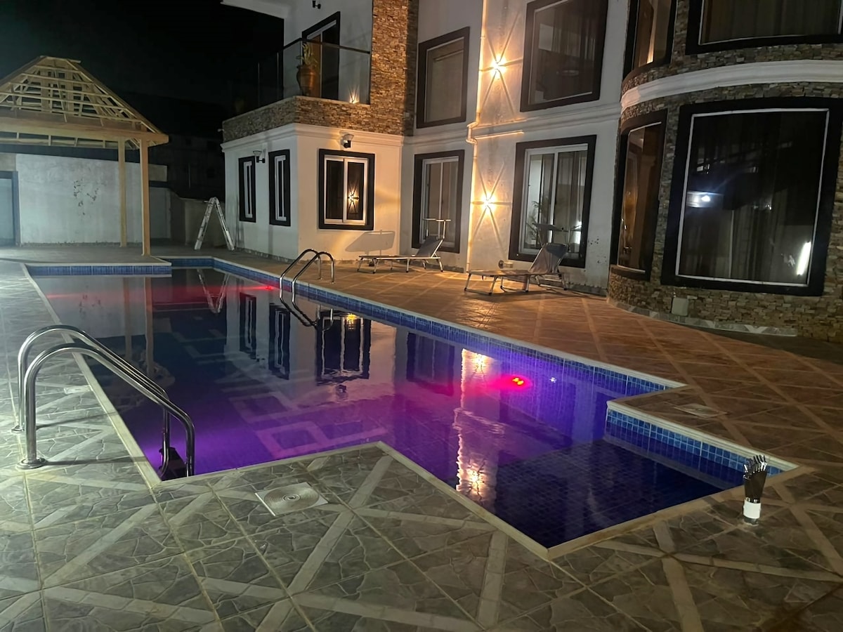 Nalazi se u legendarnim stanovima Signature, samo 10 minuta od aerodroma! Ovdje ste zbog posla, slobodnog vremena ili vaše prve avanture u Gani? Uživajte u sigurnosti 0-24, pouzdanoj rezervnoj snazi, toploj vodi i brzom/neograničenom Wi-Fi-u. Gosti vole precizne fotografije i luksuzan osjećaj. Pristup bazenima, teretani, igraonici, privatnom pozorištu, vožnji liftom do restorana A La Lune i Enigma Sky bara. Osim toga, u sklopu objekta se nalaze supermarket i apoteka. U blizini trgovačkih centara East Legon, Spintex i Accra. Rezervišite sada zbog udobnosti, praktičnosti i stila!