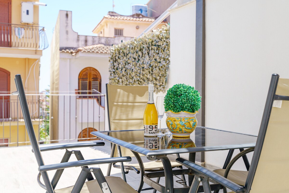 Stan površine 120 m2 s terasom: svijetla, tiha, elegantno namještena u sicilijanskom stilu. Prava kuća puna ličnosti, s antiknim namještajem, kovanim željezom, lava kamenom i terakotom koja su radila vješti zanatlije koji govore svu ljepotu i snagu ove zemlje. Veliki prozori uvijek vam omogućavaju da vidite more kada ste u kući. Prekrasna terasa će vam omogućiti da uživate u svakom trenutku: ručak, čitanje knjige i popijte lijepu čašu vina.