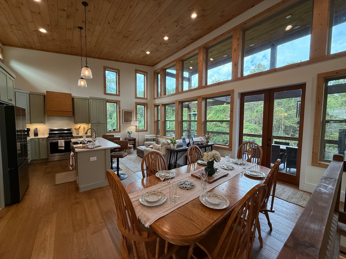 Snovi se ostvaruju! Praktično smještena 10 minuta od centra Blue Ridgea, ova lijepo uređena moderna brvnara će zadovoljiti cijelu porodicu! Gurmanska kuhinja, prostrana, dva dnevna boravka, veliki trijemovi, vanjski kamin na drva, dva plinska kamina, masažna kada, igraonica/mokri bar, vanjski krevet za ljuljanje i više opcija za majstora roštilja. Velike udobne spavaće sobe, pametni televizori u svim sobama i jednostavan pristup za uživanje u svemu! Savršeno mjesto za bijeg. Jeste li vi Mountain Dream'n?