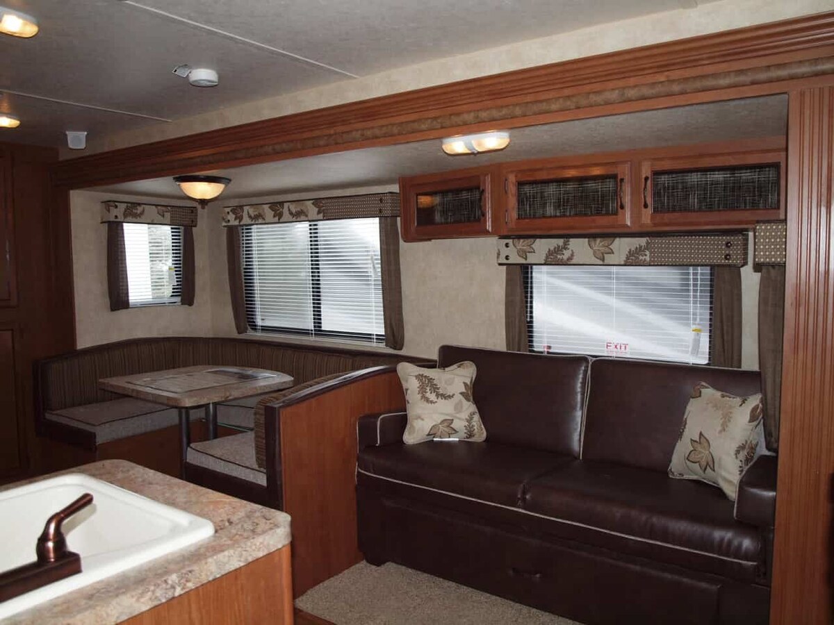 Naš moderni i udobni kamper Rockwood ima svu osnovnu opremu koja vam je potrebna za opuštajući boravak. Imat ćete jednostavan pristup namirnicama, vrhunskim restoranima, vrhunskoj kupovini i pješačkim/planinarskim stazama za brdski biciklizam koji su udaljeni samo nekoliko minuta. Uživajte u večernjoj šetnji ili vožnji biciklom kroz naš mirni kvart ili se opustite uz čašu vina ispred pucketave vatre na našoj terasi i gledajte konje kako pasu.