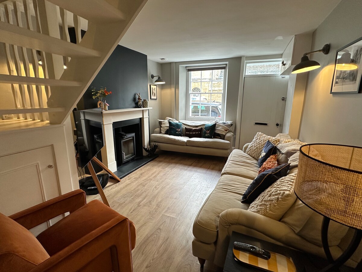 Duboko očišćena, renovirana, prekrasna elegantna kuća s 5 zvjezdica u srcu Cirencestera s parkingom na licu mjesta, 5-10 minuta hoda od centra grada. Nekretnina je prilično kamena kuća u nizu Cotswold u najpoznatijoj historijskoj i najstarijoj ulici u Cirencesteru. Ima potpuno opremljenu kuhinju, udoban i udoban salon s 3 kauča, laganu i prozračnu trpezariju te donju garderobu. Na prvom spratu se nalaze 2 spavaće sobe i porodično kupatilo, a na drugom apartman sa spavaćom sobom i kupatilom.