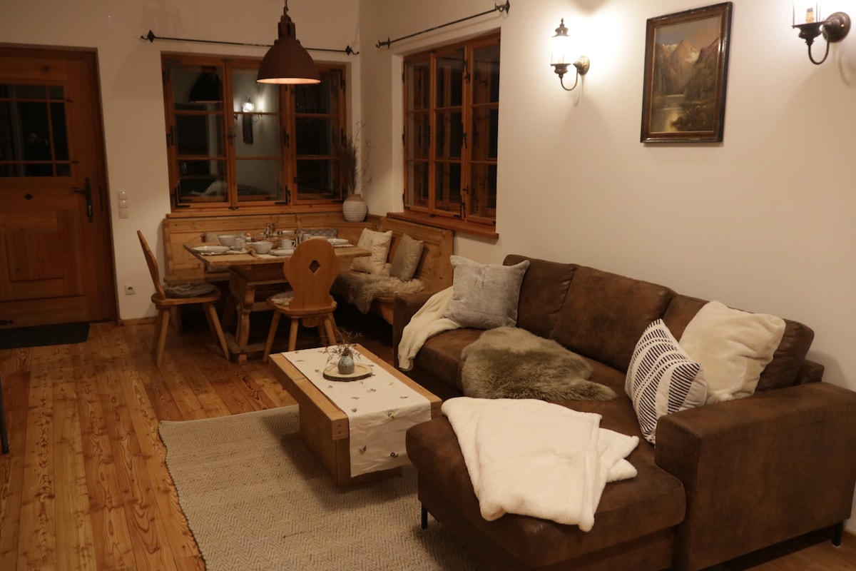 Original Austrian house large Apartment at the ground floor, 2 bedrooms and 1 bathroom for 4 persons. with a mix from new and old The kitchen is full occupied, tea/coffee/ is there for welcome you. A bathroom and separate toilet. Wifi Internet In the garten place to bbq Free parking place. The house is in the middle off the town, Bad Goisern. Supermarkets, restaurants, bakery, train and busstation on walking distance.