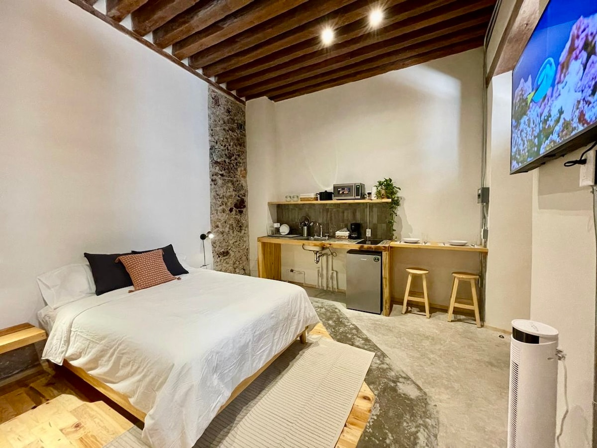 U jednom od najljepših i najživljih dijelova grada, pronaći ćete ovu malu oazu. Zgrada ima 10 stanova, parking i nadzor. Zaista lijepa, mala, udobna i sa svime što vam je potrebno za odmor i/ili rad. Visoki plafoni, drvene grede i tradicionalni podovi Oaxacana, kada, 1 bračni krevet i vrlo udoban kauč u zajedničkom prostoru.