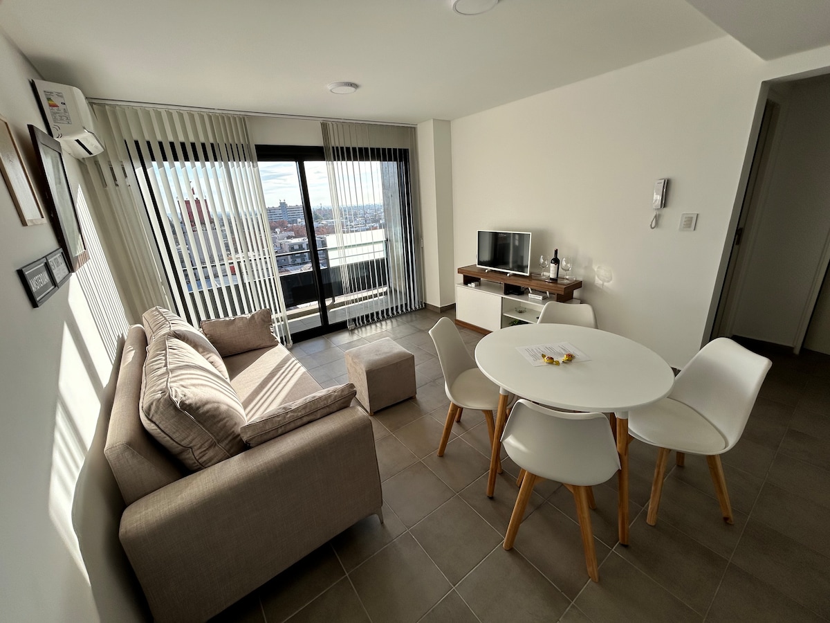 Potpuno novi stan, svijetao i topao. Smješten u najboljem rezidencijalnom dijelu Godoy Cruza, nekoliko minuta od glavnih turističkih atrakcija Gran Mendoze . Nalazi se u sigurnoj zoni s brzim pristupom. Ima klima uređaj i centralno grijanje u svim okruženjima, posteljinu, potpuno opremljenu kuhinju, zamrzivač, TV od 49", Netflix , Wi-Fi, balkon i natkrivenu garažu za automobil .