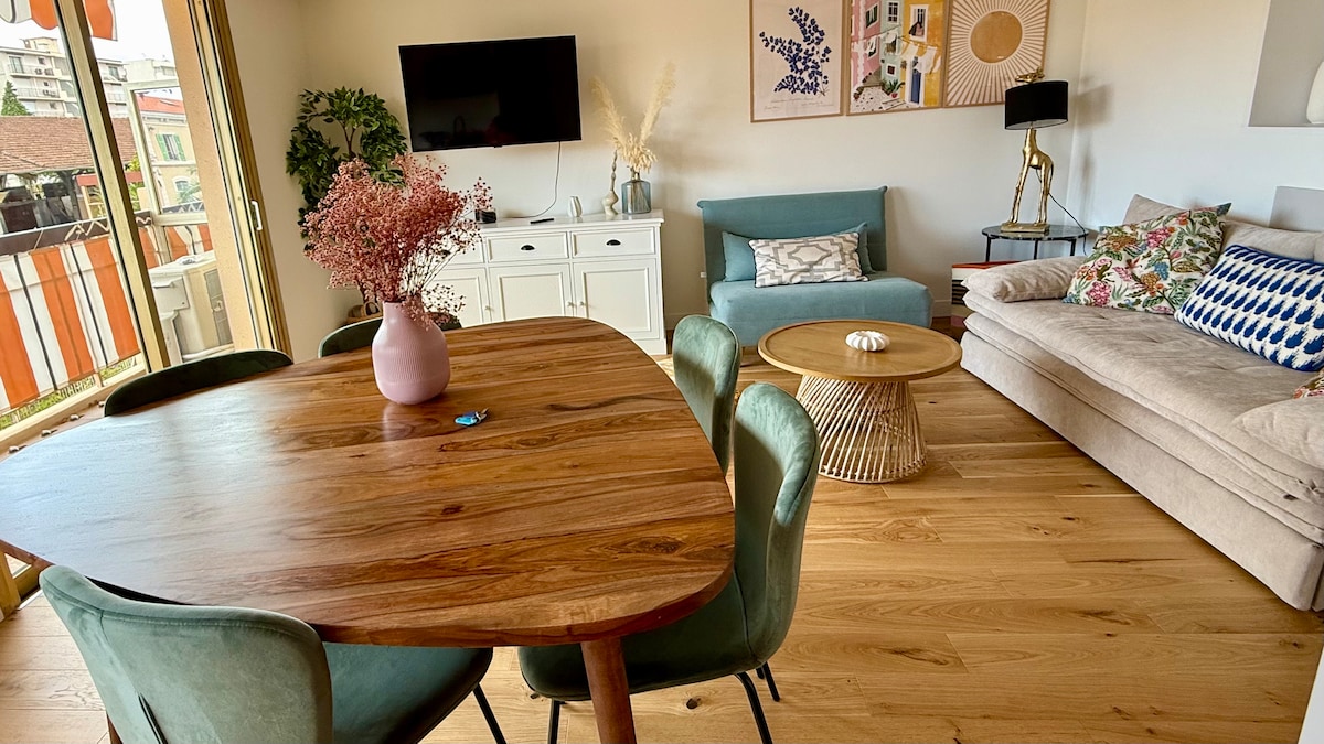 Vrhunski novi studio (26m2) dizajniran kao potpuno opremljena čahura s velikom terasom (9m2) za sunčane obroke tokom cijele godine! ☀️ Studio je malo, moderno i intimno utočište. Njegov boemski stil će vam omogućiti da se odvojite od svakodnevnice. Lift, klima uređaj, besplatan Wi-Fi (vrlo brza svjetlovodna mreža), videofon, pametni TV ravnog ekrana (110 cm), nomadski zvučnik (Sony), Nespresso aparat za kafu Privatni parking u podrumu je dostupan besplatno.