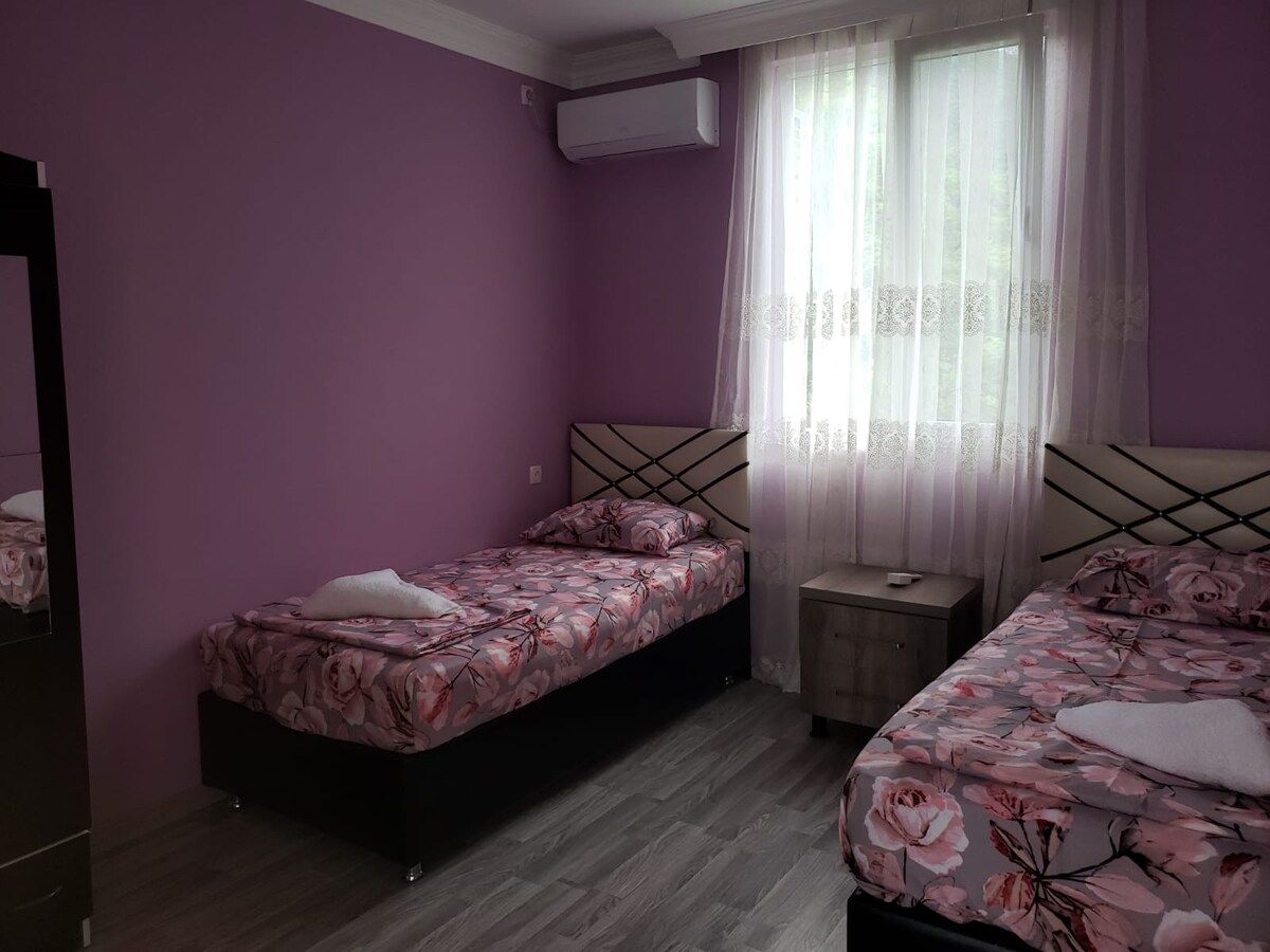 Солнечный, светлый, совершенно новый дом с красивой мебелью. Уютное и тихое место для вашего отдыха. В доме есть все, что может понадобиться для комфортного проживания: Wi-Fi, Кондиционер, Телевизор, Стиральная машинка, Сушилка, Кухонная посуда Также вы найдёте предметы личной гигиены: полотенца, мыло, фен, утюг и тд Спокойствие, чистота окружающей природы и наше гостеприимство сделают Ваше пребывание в Батуми максимально приятным и запоминающимся! Трансфер с аэропорта или вокзала - бесплатно.