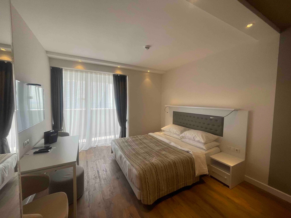Pozdrav svima koji su zainteresovani za moj apartman. Dvosobni apartman s odvojenom spavaćom sobom u apart-hotelu na obali Crnog mora. Hotel se nalazi u prvom redu, s direktnim pogledom na more s dva balkona. Samo 5 minuta vožnje od međunarodnog aerodroma Batumi. Lokacija na Novom bulevaru pruža mogućnost uživanja u tišini, zvuku talasa koji dopire, naglašavajući prednost udaljenosti od gužve. Hotel ima obezbjeđenje, uslugu konsijerža i restoran