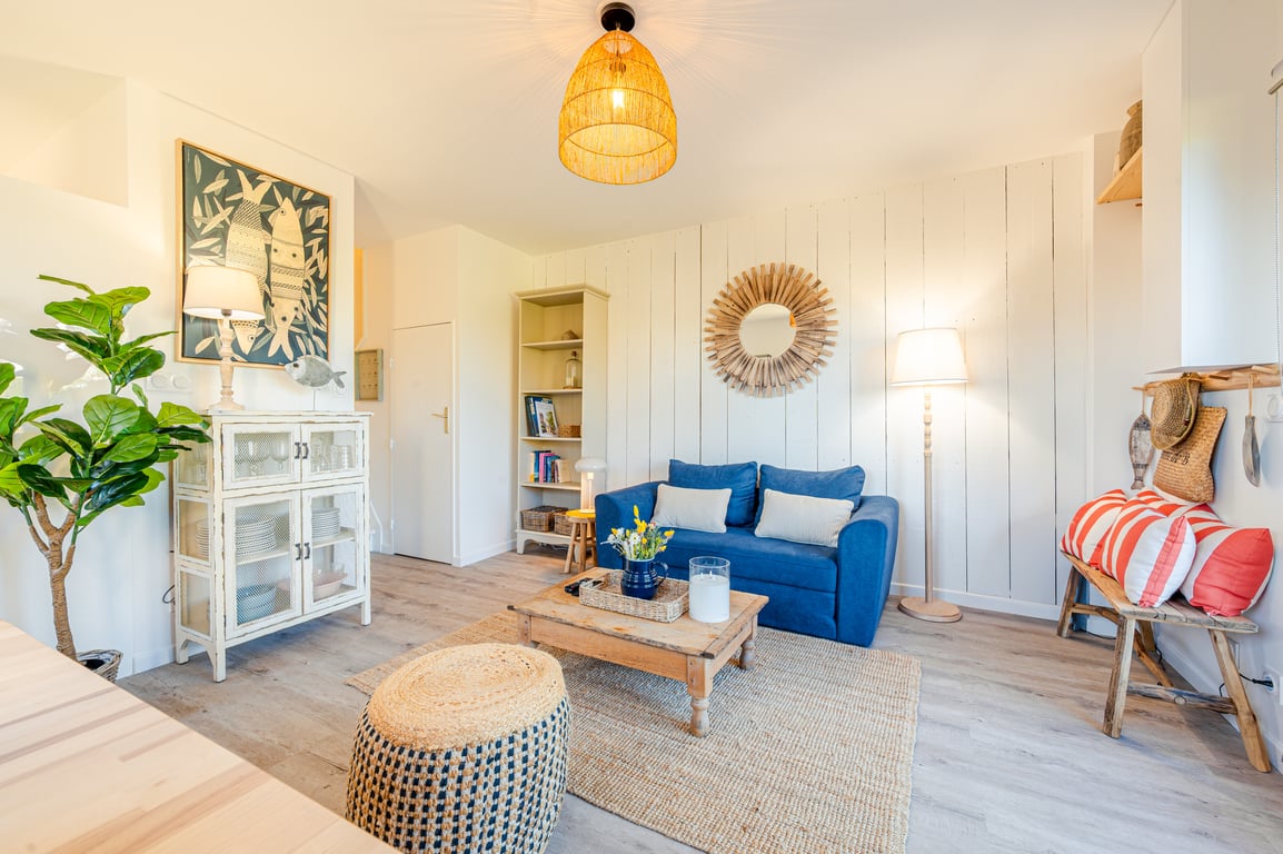 Magnifique appartement, à 50m de la mer et 250m du centre ville, entièrement rénové en 2024. Ce qui le rend unique : son esprit loft avec son toit cathédrale, sa luminosité, ses vues mer au loin et le parking privatif (bien appréciable en haute saison) ! Situé au 2ieme et dernier étage, sans ascenseur Idéal pour un couple cherchant le confort, ou une petite famille (max 4). 2 chambres, dont 1 ouverte en mezzanine (attention obscurité imparfaite) Linge fourni, Internet haut débit