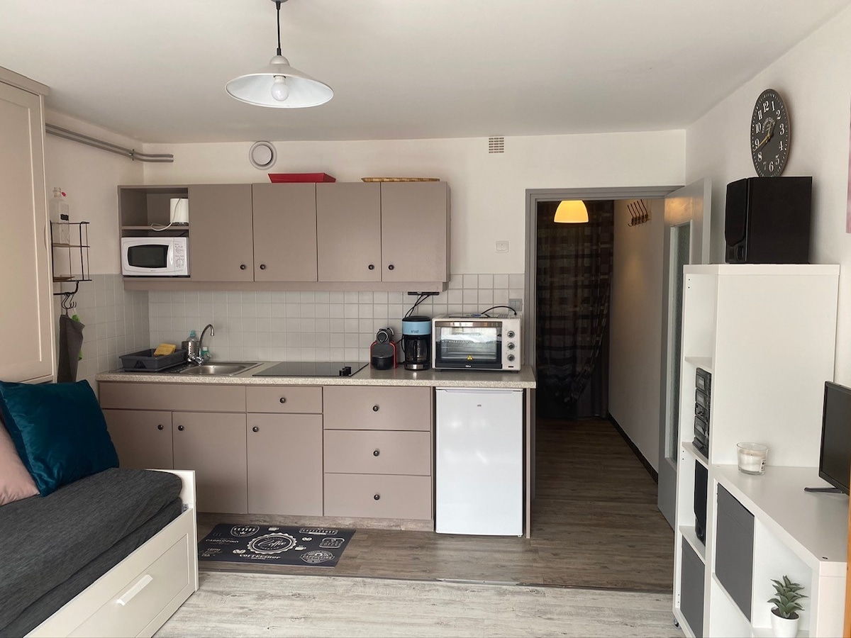 Svijetli studio potpuno renoviran! ☀️ Smještaj u blizini željezničke stanice, u blizini hiper-centra i svih sadržaja. Zgrada s liftom, mirna, nedavno renovirana i potpuno sigurna. Potpuno opremljen: bračni krevet, mašina za pranje veša, mašina za suđe, aparat za kafu, rerna, čajnik, toster, fen za kosu, pegla, ...