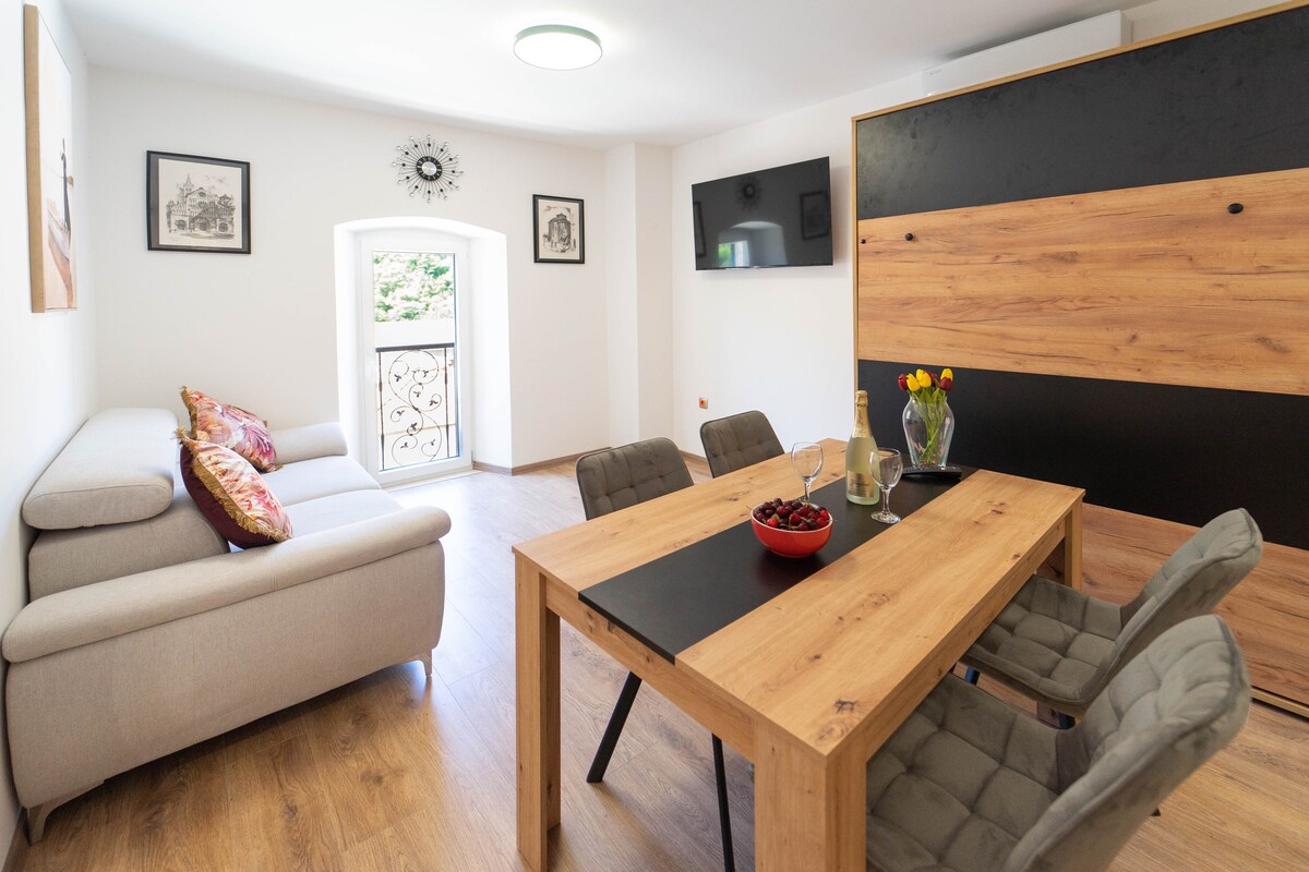 Uživajte u modernom studiju u centru Novigrada. Stan od 28 m2 nalazi se u kamenoj kući u uličici ispod historijske tvrđave Fortica. U blizini se nalazi tržnica, pekara, prodavnica, kafić i restoran. Do glavne plaže smještaja možete doći za 3 minute automobilom ili 8 minuta pješice. Uživajte u mirnom okruženju prekrasnog dalmatinskog grada. Dostupan je besplatan javni parking.