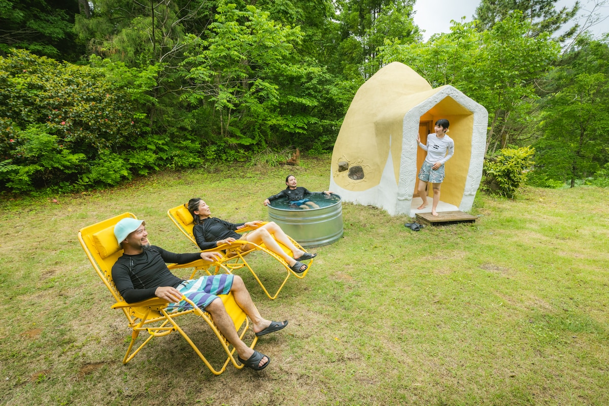 Ovo je luksuzni smještaj ograničen na jednu grupu dnevno. Budući da možete iznajmiti veliki objekat okružen prirodom, idealan je za one koji se žele igrati u prirodi dok njeguju osjećaj privatnosti. Možete mirno spavati u mirnom okruženju s nekoliko automobilskih ulica.U susjedstvu nema kuća i moguće je praviti buku do ponoći. Možete uživati u roštilju i lomači u dvorištu, šatorskoj sauni i bubnjevima. Osim toga, možete uživati u ugostiteljskoj kuhinji 150 godina starog restorana za kuhanje riže, tako da možete doživjeti izvanredno iskustvo.Iz dvorišta možete vidjeti i nebo puno zvijezda i zvijezda padalica. Područje je okruženo netaknutom prirodom, a možete se i aktivno igrati u planinama i rijekama.U blizini se nalazi i veliki termalni izvor gdje se možete kupati jeftino.Tu je i restoran u termalnom izvoru, tako da možete provesti vrijeme za opuštanje. Čak i ako dođete u objekat sa svojom porodicom, nema sumnje da će to biti najbolja uspomena za vaše dijete.Čak i ako dođete u prodavnicu s prijateljima, imat ćete najbolje uspomene. Ako želite, možete predstaviti i obližnja turistička mjesta.Dođite i doživite prirodu okruženu prirodom.