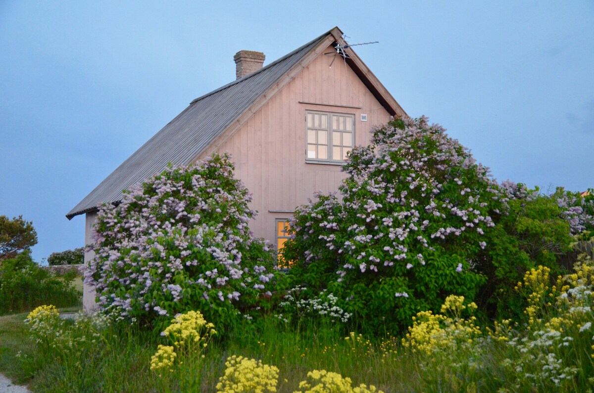 Her vil I bo! Frisk og veludstyret lille feriebolig i naturskønne omgivelser, 5 km syd for Visby. Ideel til et afslappende ophold for 2 voksne og 2 børn. På 1 sal er der to senge (80x200 cm), og i stuen findes en sovesofa (udslået 180x200 cm). Der er skærme med HDMI-kabel på begge etager. Tæt på havet med smukke solnedgange. Gåafstand til Prinsesse Eugénies Fridhem, Kneippbyn og naturreservaterne Högklint og Kuse änge. Røgfrit og husdyr ikke tilladt. Hyggelig gårdhave med grill.