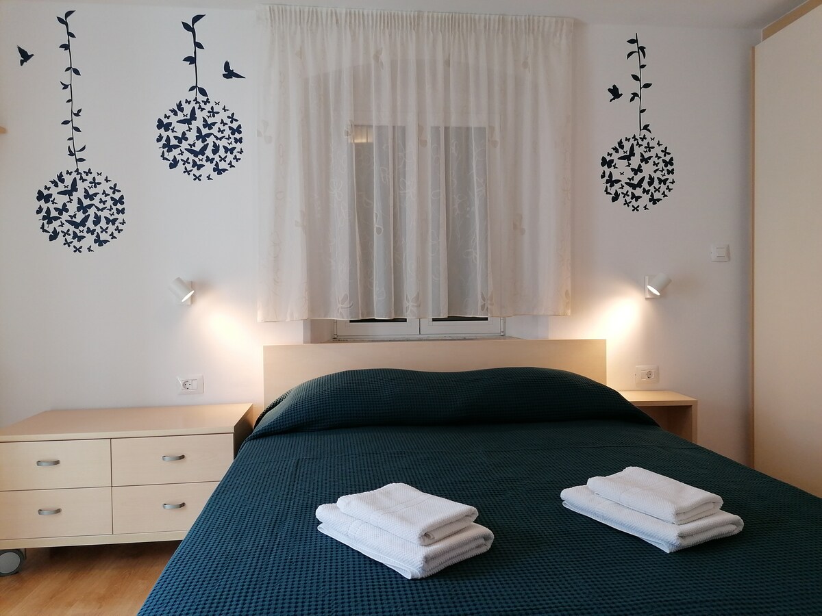 Apartment Rialto is a two-level apartment in a family house, located in the old town center near the town square and close to the beach. It consists of a living room, fully equipped kitchen, bedroom and bathroom. In front of the house there is a space covered with awning for sitting outside. Free WI-FI is available throughout the property. The apartment has two air-conditioning units (living room and bedroom). Free private parking is 4 min away on foot. The nearest beach is 5 min away on foot.