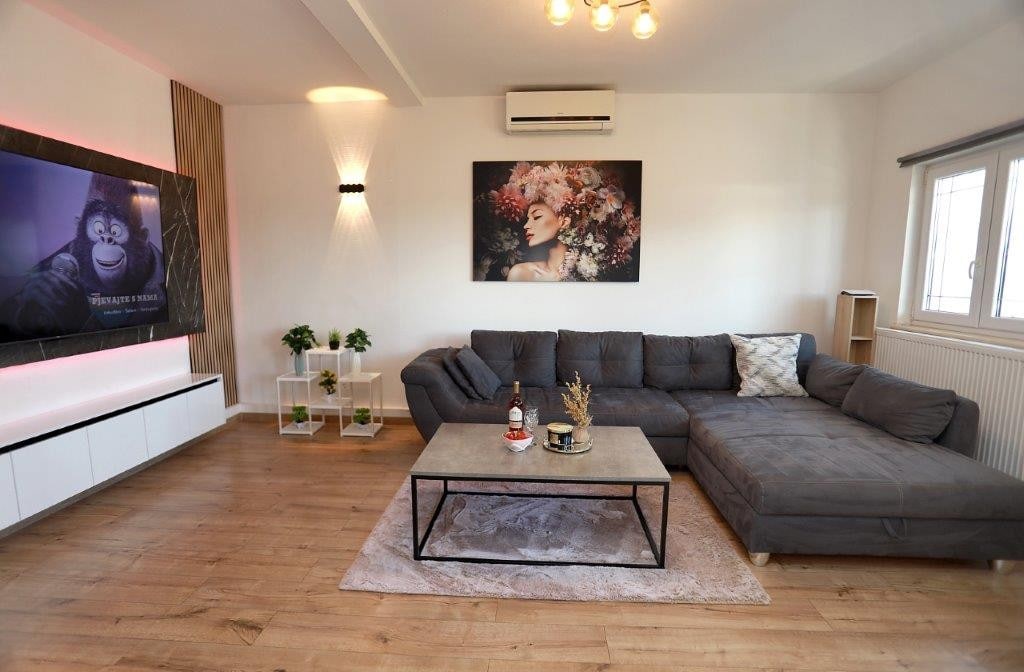 Stan na mjesečini – privatna oaza s bazenom i parkingom Dobrodošli u Moonlight Apartment, elegantno utočište u Kaštel Starom. Ovaj dvosobni stan u prizemlju nudi privatno dvorište s bazenom i dva parking mjesta. Uživajte u klimatizovanim sobama s pametnim televizorima, potpuno opremljenoj kuhinji, dva kupatila (jedno u sklopu apartmana) i vrhunskim sadržajima. Samo 8 minuta od aerodroma Split, s trgovinama, plažama i prevozom u blizini. Savršeno za opuštajući boravak ili istraživanje Dalmacije. Rezervišite odmah!