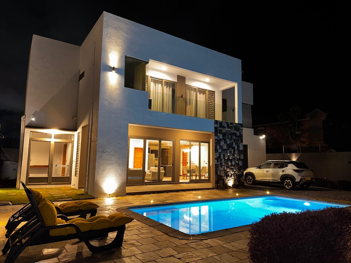 This stunning and modern villa situated in the heart of Pointe aux cannonier will be everything you need to make memorable holidays. Seaview and walking distance to the beach via a private access in the compound. ○ Gated compound ○ 3 bedrooms with ensuite ○ Big pool ○ Comfortable and modern ○ Gym in the compound ○ Private parking in front of the Villa ○ Conciergerie services if needed