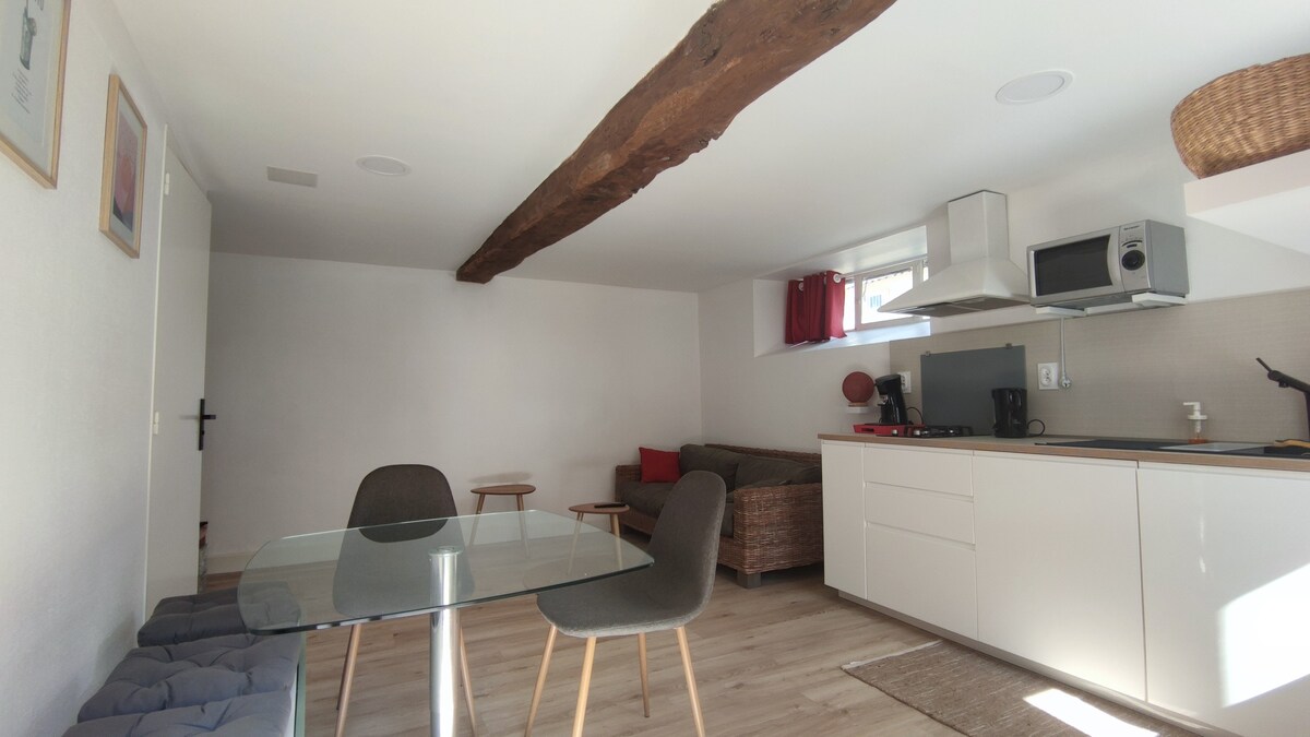 Opremljen i potpuno renoviran studio apartman od 25 m2 u prizemlju stambene kuće sa nezavisnim ulazom i malom terasom. Puna kuhinja sa mikrovalnom pećnicom, štednjak, hladnjak sa zamrzivačem i posuđem. Spavaća soba sa ormarom na razvlačenje 160*200 m2, TV, kauč i stolić. Kupatilo s tušem. U blizini zelenog puta i obala Vilaine. Nalazi se u Port of Guipry okrugu. Restorani, pekara i supermarket u blizini.