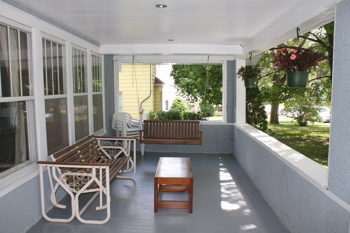 Beautiful 1913 4 bedroom 2 bath home with original woodwork just 12 miles (about 15 -20 minutes) from the Mayo Clinic and less than 10 minutes to the airport. The home backs up to a park with both trails and playground equipment. There is on and off street parking and from Nov 15 - March 15 includes 1 garage space. Fully furnished home with complete kitchen, bedding and towels. Main floor bathroom has a seated shower with handheld. I will provide a Mayo Clinic parking pass upon request.