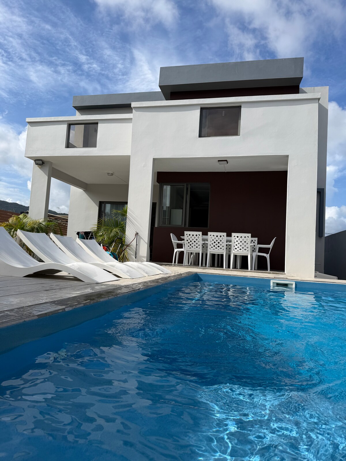 Smješten u mirnom okruženju, naš novoizgrađeni dom nalazi se u području Mahébourg, samo 7 km od aerodroma. Moderan i elegantan, udaljen je samo 7 km od zadivljujuće plaže Blue Bay koja je poznata po bogatom morskom životu i prekrasnim koraljnim grebenima, što ga čini jednim od najboljih mjesta za ronjenje na otoku, a u blizini je i Pointe d'Esny. Opustite se u našem bazenu ili se opustite u vanjskom salonu inspirisanom Balijima. Svaki detalj je pažljivo osmišljen kako bi se osigurala vaša udobnost od samog početka vašeg odmora.