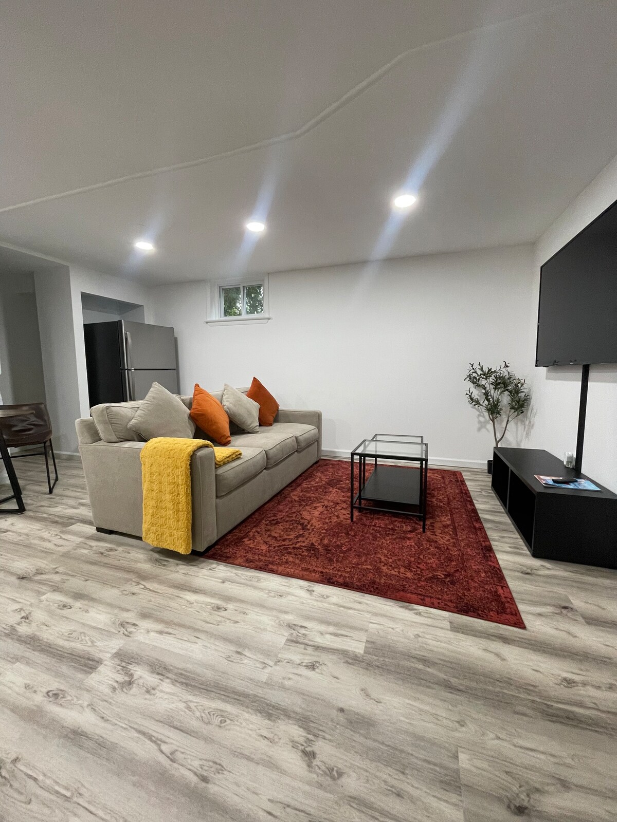 Welcome to Your Private Garden Retreat in Herndon! Enjoy a peaceful getaway in this beautifully designed 2-bedroom unit, each bedroom featuring an en-suite bathroom and a dedicated workspace—perfect for comfort and productivity. Relax in the spacious living area with a 6-seater sectional, a 65-in smart TV, an open-concept kitchen fully stocked with all the essentials. The master bedroom also includes its own 55-inTV for added comfort Come unwind in this cozy oasis—your perfect escape awaits!