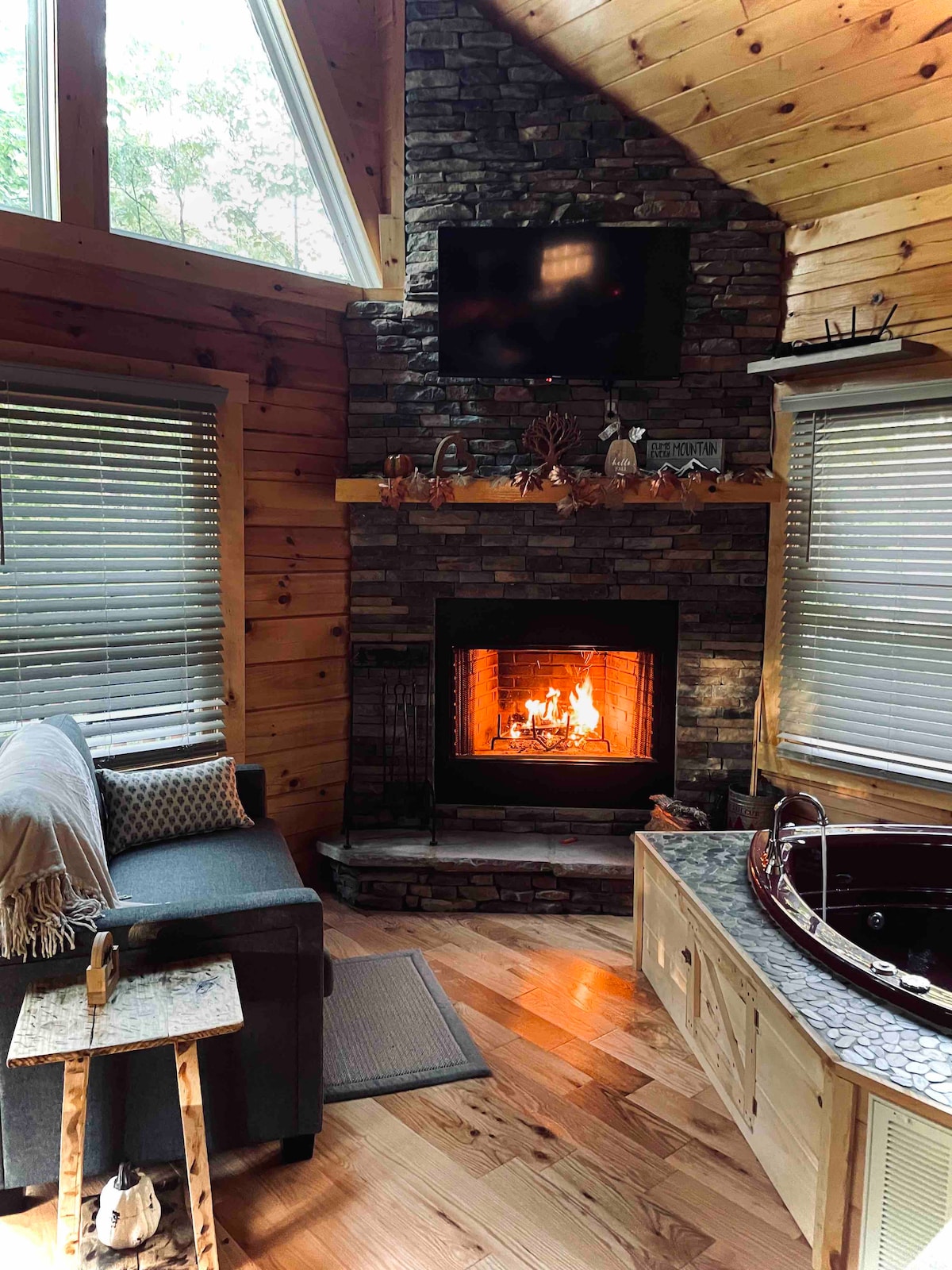 Dobro došli u brvnaru na selu! Moje ime je Eric, vlasnik/domaćin ove nedavno obnovljene, osamljene, privatne, originalne drvene brvnare okružene prirodom. Ovo je divna brvnara za medeni mjesec/godišnjicu, savršena za opuštajući romantični odmor za parove! Nalazi se u zajednici Arts and Crafts u blizini ceste Glades. Samo 10 minuta udaljenosti od fantastičnih lokalnih restorana, umjetnosti i rukotvorina, planinarenja, kupanja i 6 km do centra Gatlinburga. Masažna kada za 5 osoba - Plinski roštilj - Vatrena jama
