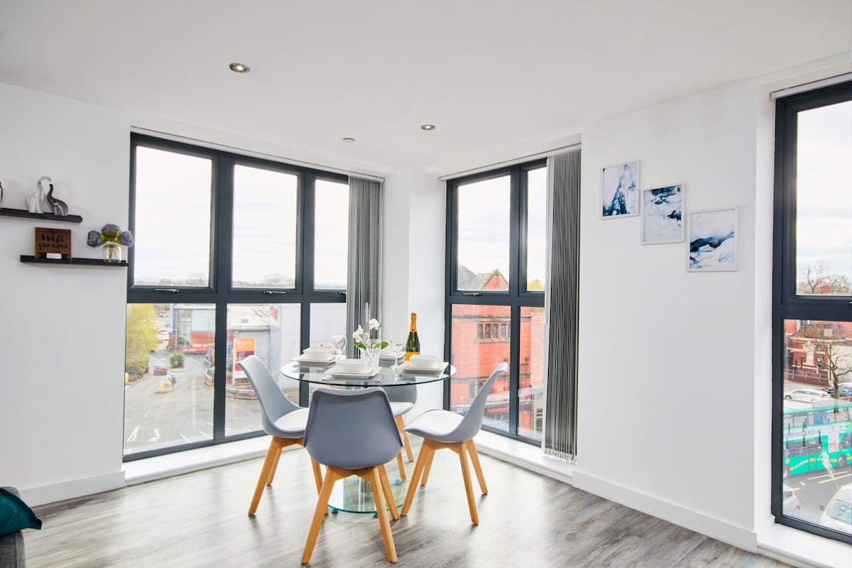 Elegantan smještaj s 2 kreveta u blizini stanice i bolnice | Besplatan rezervisani parking i Wi-Fi Uživajte u opuštajućem boravku u našem modernom dvokrevetnom stanu, samo 5 minuta od stanice Davenport s brzim vezama do Manchestera. Idealno za porodice, preseljenike, osoblje NHS-a i izvođače! - 2 spavaće sobe – 1 bračni krevet + 1 zip-link (1 bračni krevet/ 2 kreveta za jednu osobu) - 5 minuta hoda do željezničke stanice - 9 minuta vožnje do bolnice Stepping Hill - Izuzetno brz Wi-Fi i Smart TV - Besplatan privatni parking + parking izvan ulice Rezervišite sada za elegantan i jednostavan boravak!
