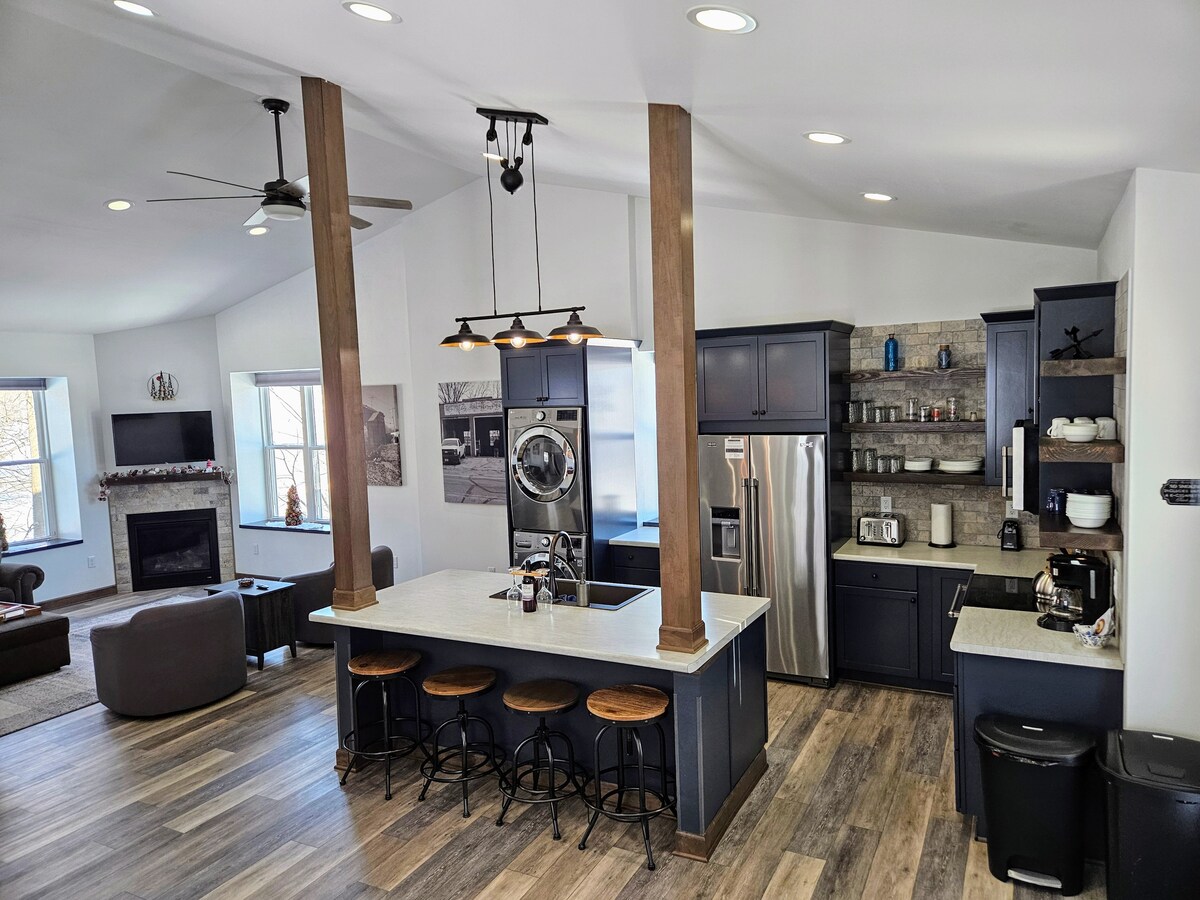Dobro došli u moj gornji stan (privatno stepenište do 2. sprata), jednu ulicu od centra New Glarusa gdje ćete pronaći šarmantne prodavnice, ukusne restorane i aktivnosti! Ova jedinica može primiti 4 osobe. Postoji bračni krevet i kauč na razvlačenje za kraljicu. Kuhinja je u potpunosti opremljena frižiderom, rernom, tosterom i aparatom za kafu. Zajedno s udobnim prostorom za jelo! Dnevni boravak ima zidove prozora i pametni TV. W/D su uključeni.