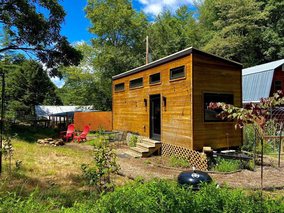 Our tiny house is located on our 2 acre homestead, where we garden and raise chickens, ducks, heritage rabbits & Nigerian dwarf goats. Designed and built by us in 2016, our tiny house is surprisingly spacious, has a cozy modern cabin feel, features minimalist decor and plenty of amenities. Our tiny house is located… 35 mins from downtown Asheville 30 mins from the Blue Ridge Parkway 45 mins from Grandfather Mtn and other top tier hiking 25 mins from the A.T. 5 mins from Burnsville