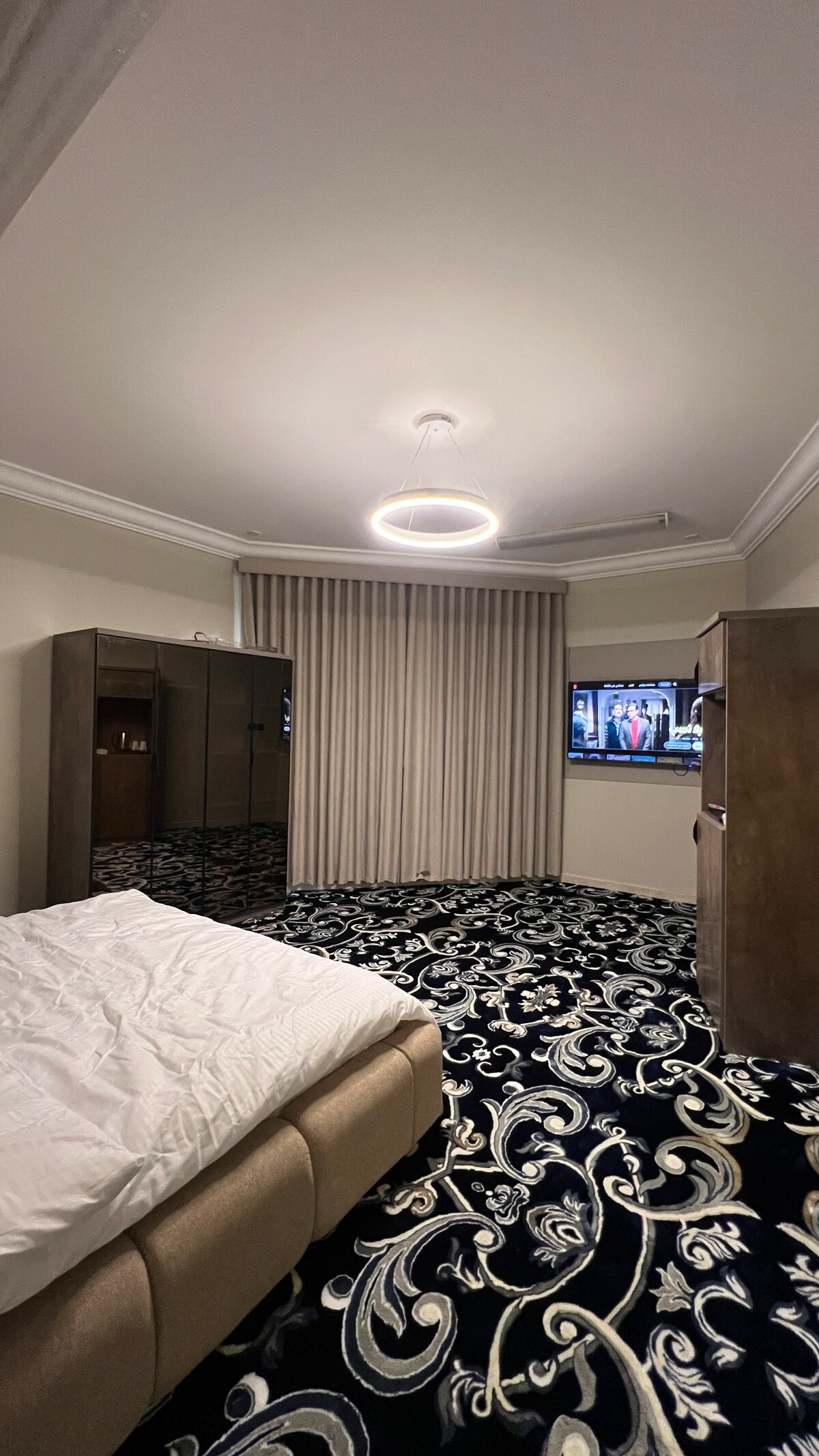 Dobro došli u ovu elegantnu i luksuznu sobu koja kombinuje eleganciju i udobnost u svakom uglu i nudi savršen boravak za jednu noć ili duži boravak, udoban bračni krevet sa svjetlom ispod kreveta dodaje dašak topline i ljepote veliki prozor koji dodaje odlično prirodno osvjetljenje, pametni i veliki TV, Split klima-uređaj Soba je dizajnirana u mirnom i udobnom stilu, s bež i zlatnim bojama i toplim drvenim detaljima, rasvjeta je pažljivo osmišljena kako bi odgovarala različitim vremenima: jarko jutro ili tiha večer, pogodna za parove, putnike koji putuju sami ili čak poslovne posjetioce.