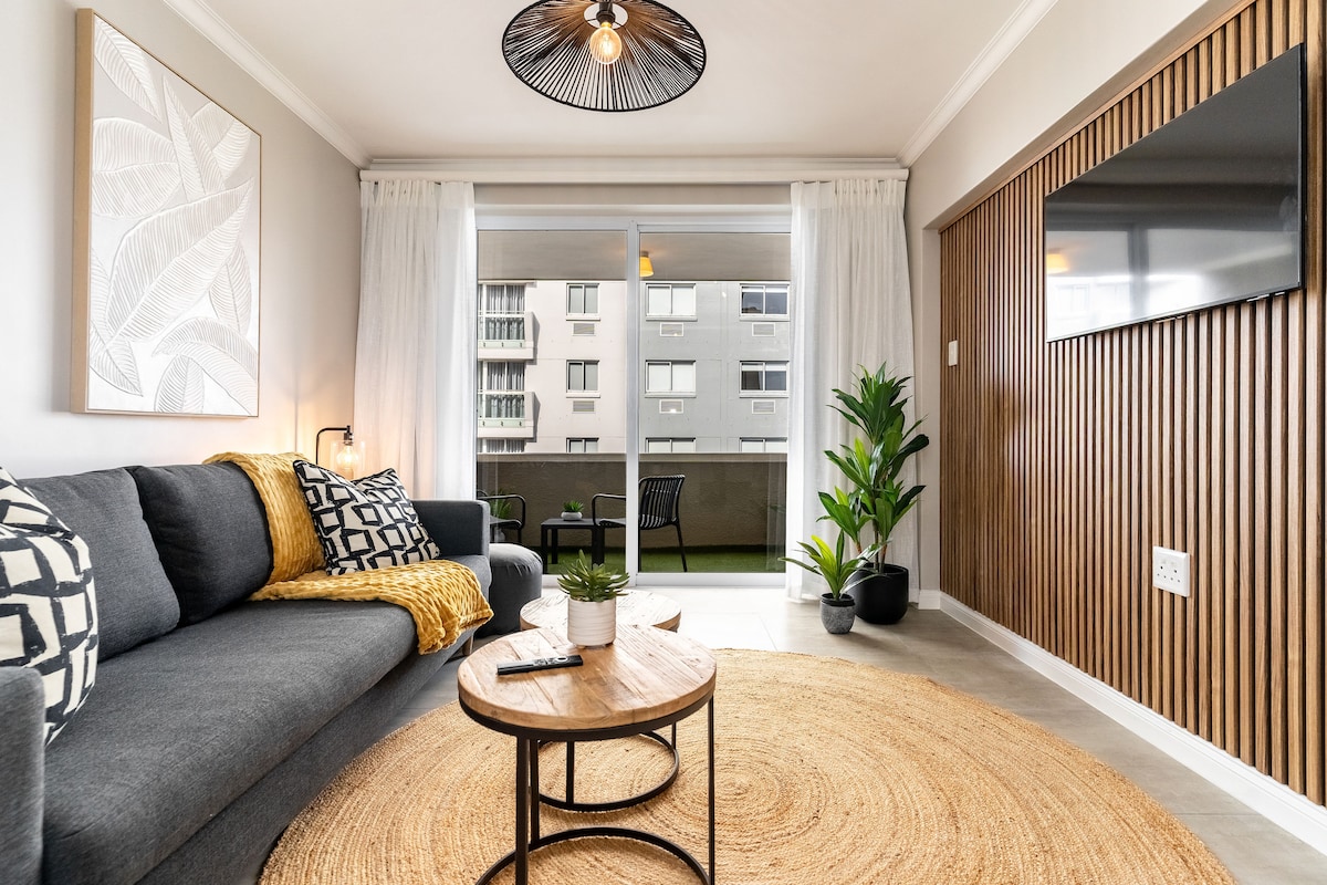 Dobro došli u naš potpuno novi dizajnerski dom u kojem se praktični susreću s ljepotom i elegantnim ukusom redoslijed dana. Ujutro otvorite zavjese kako biste uživali u pogledu na Stolnu planinu sa svog obilnog balkona. Industrijski osjećaj i visoki plafoni daju dojam galerije. Ako vas trenutak zgrabite, uputite se na krovnu terasu bazena i prostor za zabavu gdje možete uživati u grimiznim ružičastim zalascima sunca i pogledu od 360 stepeni na Cape Town, uključujući Atlantski okean. *Nema nestanka struje u ovoj zgradi.