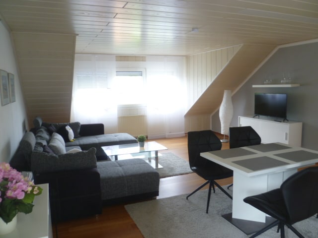 Ovaj stan u potkrovlju od 75 m2 u modernoj četvrti Kreuzviertel u Münsteru nalazi se na vidiku. U roku od nekoliko minuta hoda možete doći do dvorca, centra grada, univerziteta i starog grada. Moderan stan se nalazi u stražnjoj kući u mirnom dvorištu. U neposrednoj blizini se nalaze atmosferski kafići, barovi, pabovi, restorani i pozorište.