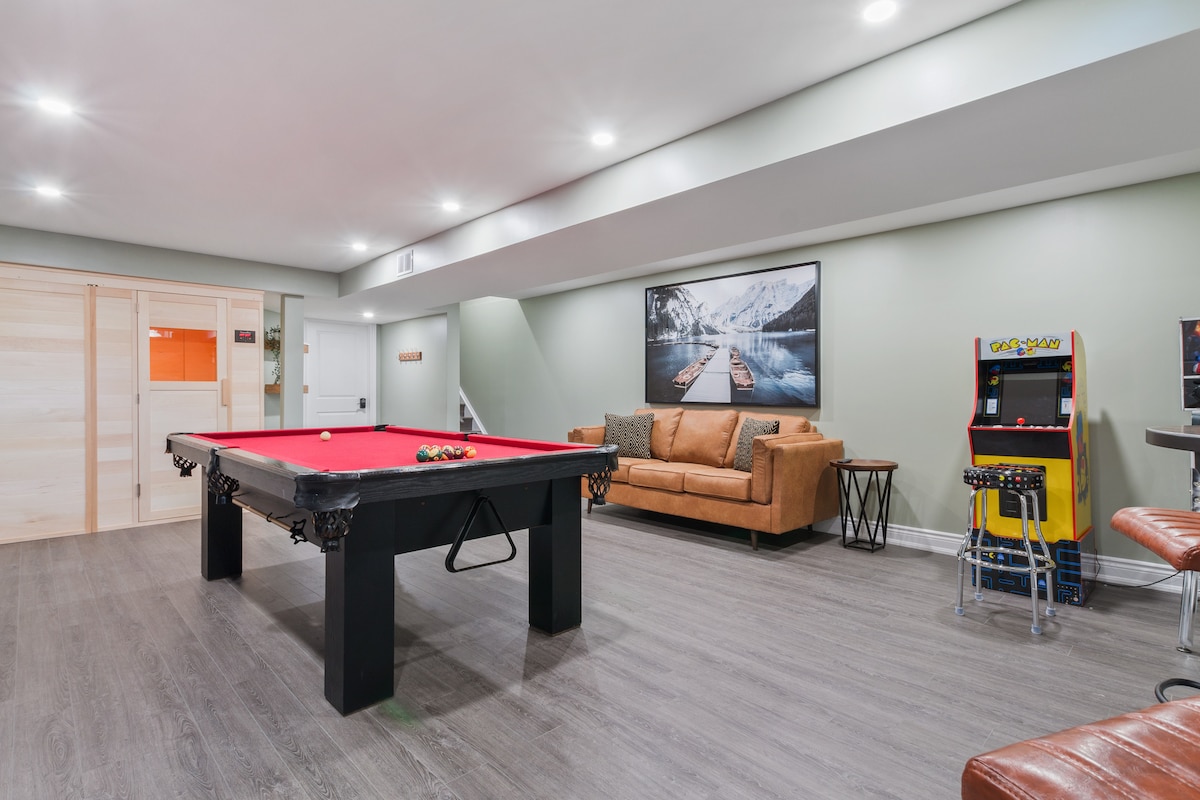 Dobro došli u Bayview Oasis, našu luksuznu kuću na jezeru u Georgian Bayu. Uživajte u prekrasnom pogledu na vodu, modernoj kuhinji s vrhunskim uređajima, udobnom podrumu s bilijarskim stolom i barom i glavnom apartmanu s vrhunskim sadržajima. Na otvorenom se opustite u kabini s pećnicom za pizzu, kaminom, stolovima za piknik, prostranom terasom, masažnom kadom i našim novim prilagođenim terenom za pickleball. Bilo da se radi o romantičnom odmoru ili porodičnom odmoru, Bayview Oasis je savršeno utočište.