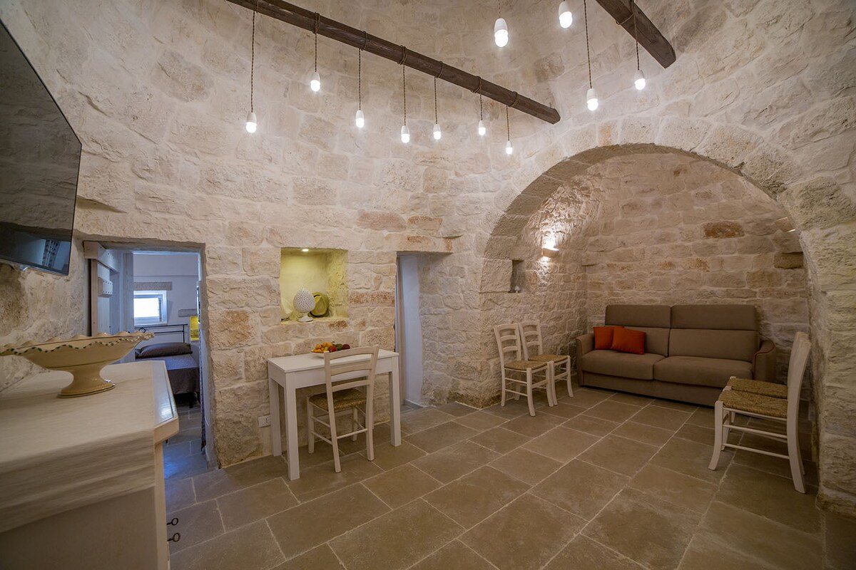 Renovirani trullo na mirnoj lokaciji na selu s autentičnim stilom, većina interijera je reciklirana ili stari namještaj preuređen na moderno funkcionalan način. Ima 1 spavaću sobu s bračnim krevetom i 1 kauč u dnevnom boravku. Novouređeno kupatilo s tušem,potpuno opremljenu kuhinju, mašinu za pranje veša i mnogo prostora na otvorenom (jedna terasa kojoj se može pristupiti iz spavaće sobe i jedna s druge strane s roštiljem Pristup bazenu dijeli se s gostima druga 2 objekta (bez vanjskih)