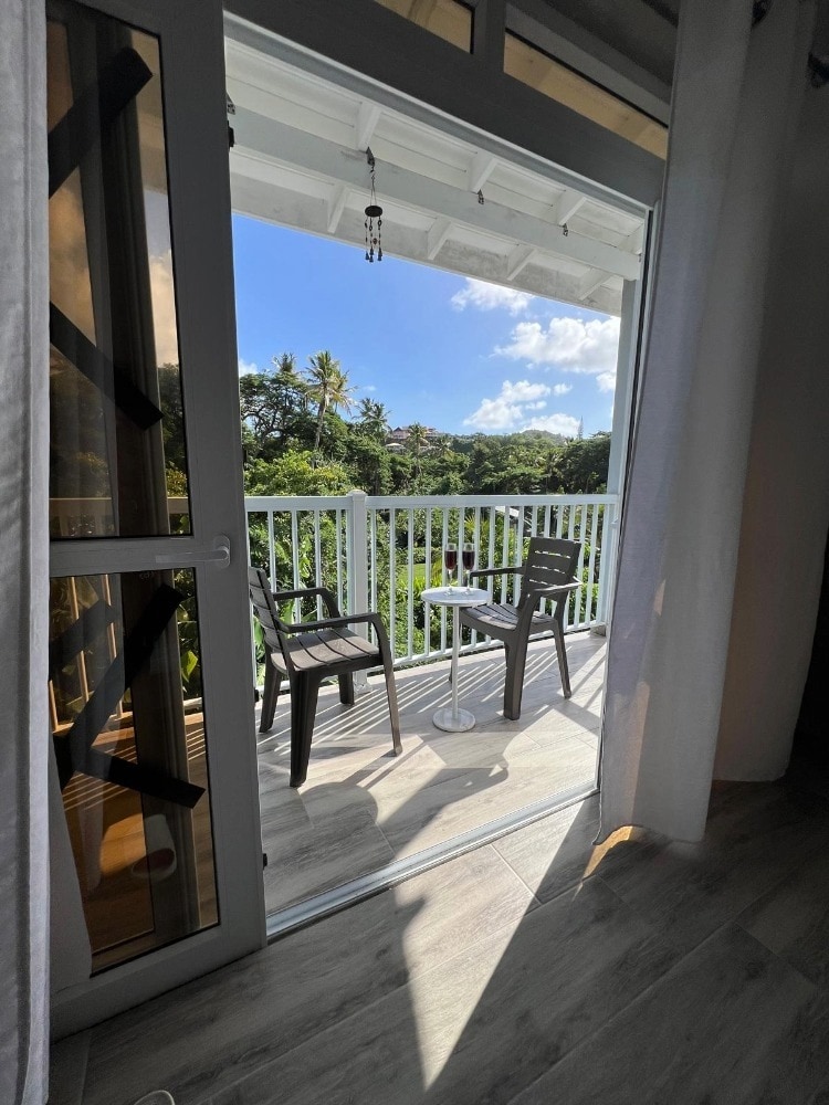 Jedan od naših gostiju je, nakon što je vidio pogled, odmah rekao: „Nema riječi koje bi to opisale!” Ipak, pokušat ćemo; lijepo, mirno, zen i spokojno! Moderna kuća sa spektakularnim pogledom na zaliv Anse Galet ispod, Martinik iza i zelene krošnje drveća ispod! Probudite se uz zvuk cvrkutanja ptica i talasa koji se sudaraju! 10 minuta vožnje od plaže, trgovina, historijske tvrđave Pigeon Point i 3 minute vožnje od odličnog golfa! Bienvenue.........sve je nadohvat ruke!!
