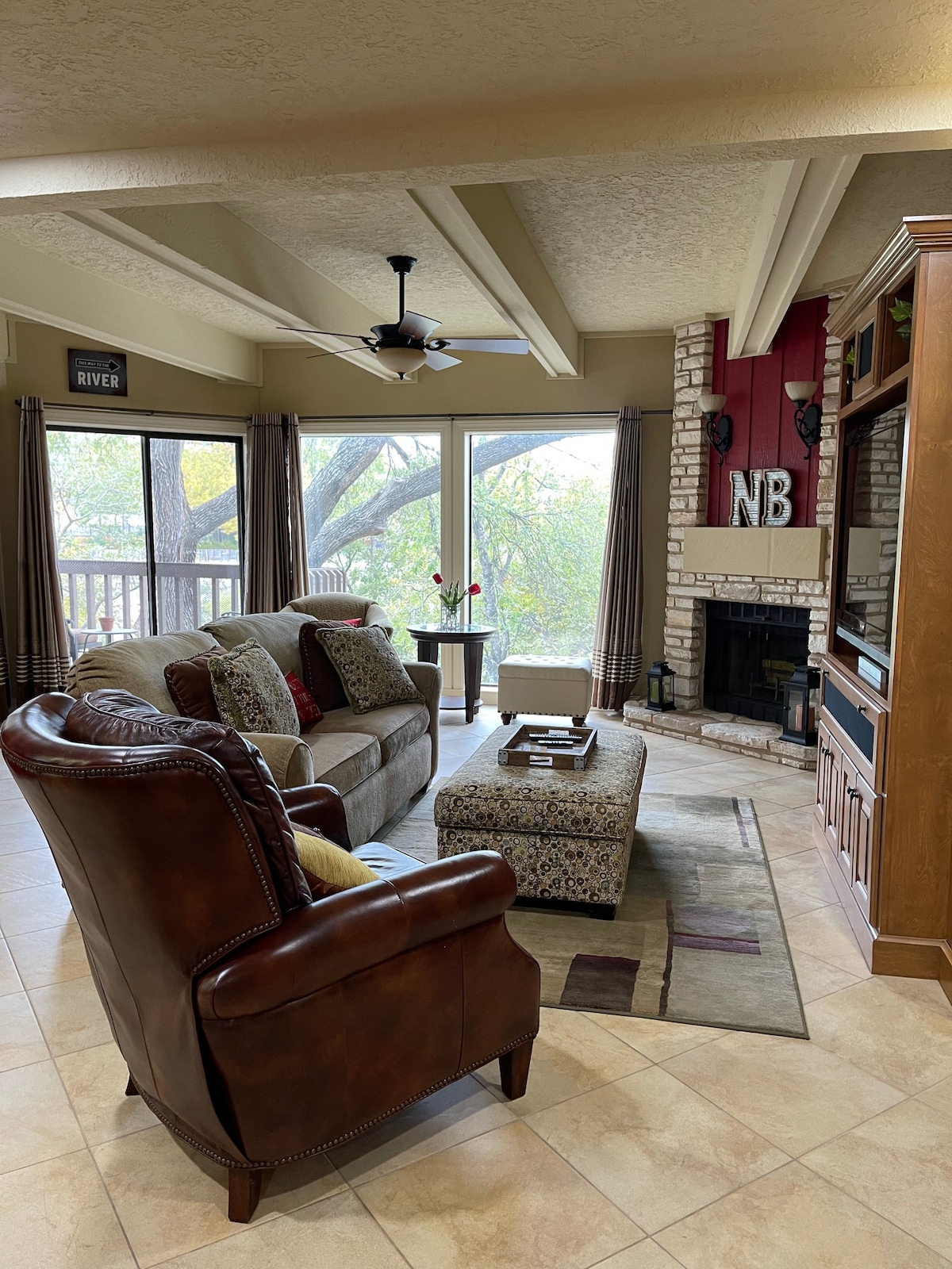 Smješten u historijskom dijelu grada Gruene u Teksasu sa zadivljujućim pogledom na rijeku Guadalupe sa vašeg privatnog balkona. Ovaj prostrani trosobni stan ima sve što vam je potrebno da biste se osjećali kao kod kuće s brzim internetom, kablovskom televizijom, perilicom i sušilicom. Skriveno na rubu rijeke Guadalupe možete uživati u direktnom pristupu rijeci, opustiti se pored bazena s vodopadom ili prošetati i uživati u svim trgovinama, restoranima, barovima i noćnom životu koje historijska Gruene nudi. Radujem se što ću vas ugostiti!