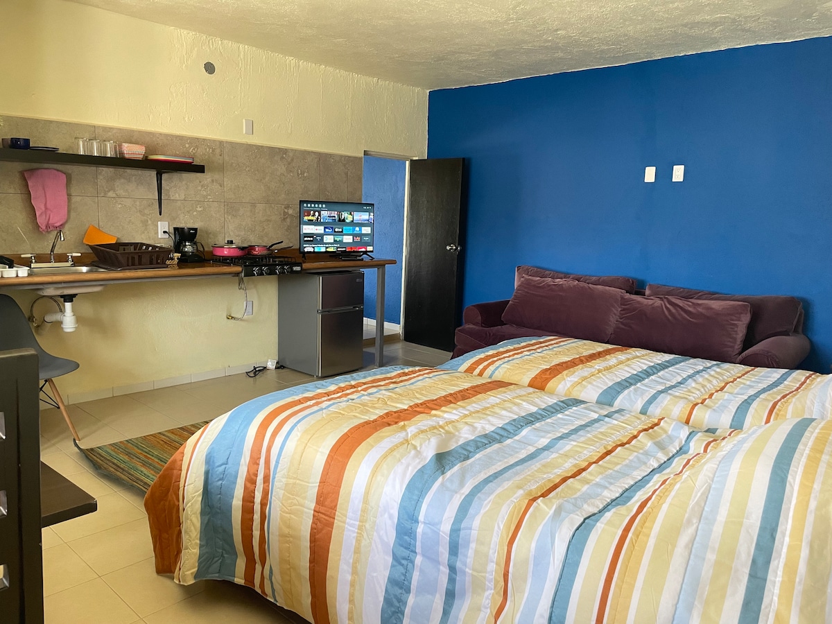 Prekrasan apartman za 2 osobe. Nalazi se odmah pored Alamede u historijskom centru Zacatecasa!Ovaj apartman ima spavaću sobu s bračnim krevetom, kupatilo i potpuno opremljenu kuhinju kako biste mogli kuhati sve što želite. A ako putujete s vozilom, imamo privatni parking u istom objektu. Ako je vaš boravak duži, imamo uslugu čišćenja uz dodatnu naknadu. Dođite i zaljubite se u najljepši grad u Meksiku!