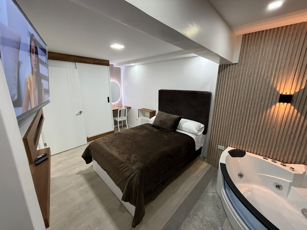 Uživajte u jedinstvenom odmoru u našem šarmantnom mini apartmanu na selu Cuenca s jacuzzijem! Nalazi se 20 minuta od centra grada, s jednostavnim pristupom za sve vrste vozila. Karakteristike: Privatni jacuzzi, opremljena kuhinja, TV s kanalima i Netflixom, zelene površine i ognjište. Privatni parking. Mjesto je u blizini restorana, pekare i lokalnih opcija. Idealno za odmor, rad ili posebne događaje. Uključuje koordinaciju prevoza i personalizovanu pažnju za jedinstven boravak.