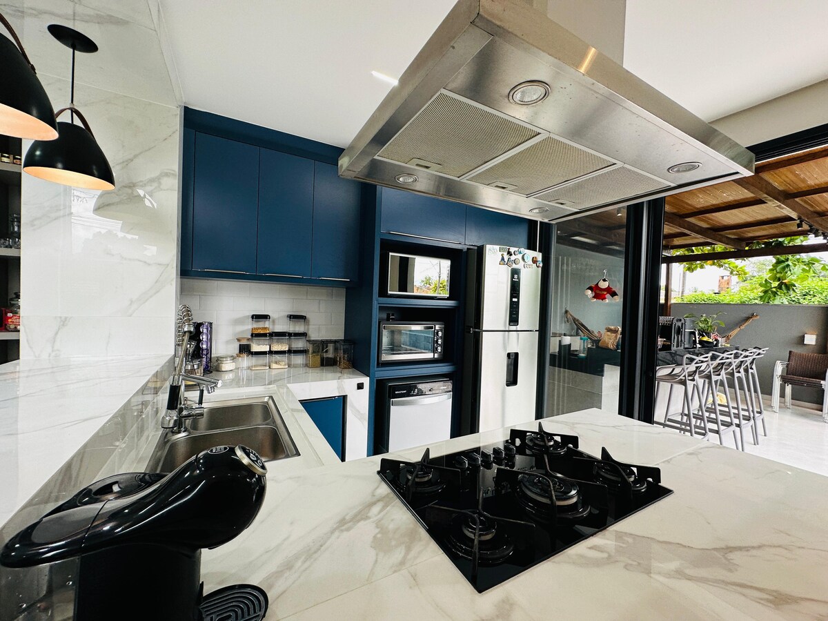 Zabavite se s cijelom porodicom u ovom elegantnom smještaju. Prekrasna i udobna kuća, ograđena zajednica, novogradnja, prostrana i udobna! Kuća udobno prima 14 osoba, s kompletnim setom posuđa za 14 osoba, aparatom za sendviče, tosterom, filterom za vodu, blenderom, mikserom i aparatom za kafu. Klima uređaj u svim sobama, sobama i gurmanskom prostoru. Svi kreveti su prilagođeni, novi madraci s oprugama. U blizini plaže, sa 03 bazena, pješčanim terenom, igraonicom.