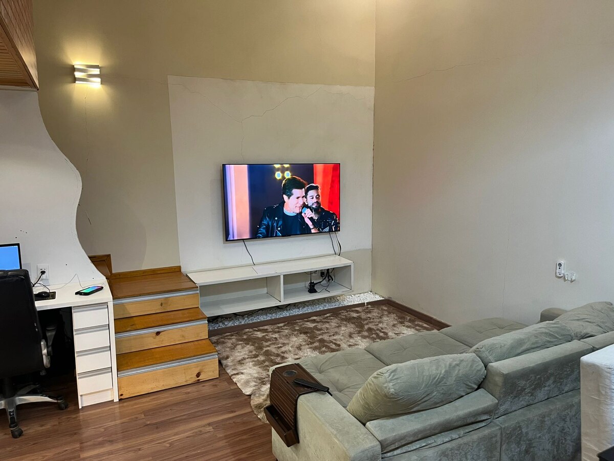 Loft 512 je idealno mjesto za odmor za one koji traže mir i udobnost. Dnevni boravak je srce kuće, s TV-om i kaminom na alkohol za hladnije noći. Kuhinja je opremljena osnovnom opremom za pripremu obroka. Prostrana soba ima bračni krevet, klima-uređaj i prirodno svjetlo. Knjige i igre na terasi su dostupne za trenutke odmora i opuštanja. Potkrovlje je udaljeno nekoliko blokova od centralnog trga São Miguel do Oeste.