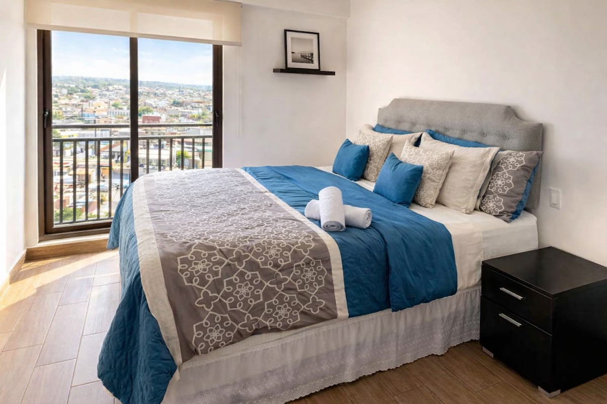 Imagina despertar cada mañana con vistas espectaculares en nuestra suite elegante y lujosa. Ubicada en una zona exclusiva, estarás a solo 10 minutos del aeropuerto. A pasos de tu puerta, encontrarás con restaurantes, salones, tienda y cafés. La suite incluye bicicleta para que puedas dar un paseo. Y cuando quieras relajarte o socializar, disfruta del área social que ofrece entretenimiento y espacios diseñados para compartir momentos inolvidables.