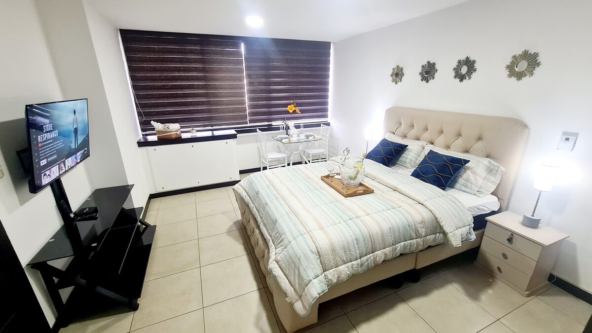 Uživajte u jednostavnosti ovog mirnog i centralnog smještaja. Odlična lokacija, 3 minute od aerodroma. Zgrada ima osiguranje i recepciju 0-24, teretanu, bazen, saunu. Nekoliko minuta hoda od Ominhospital, Mall del Sol i Plaza del Sol, koji pruža pogodnost tržnog centra s restoranom, restoranima, barovima i većinom banaka. Skladište ima Wi-Fi, streaming, klima-uređaj, kuhinju, kuhinju, mašinu za pranje veša, mašinu za pranje veša, sušilicu, sušilicu i 2 kauča na razvlačenje.