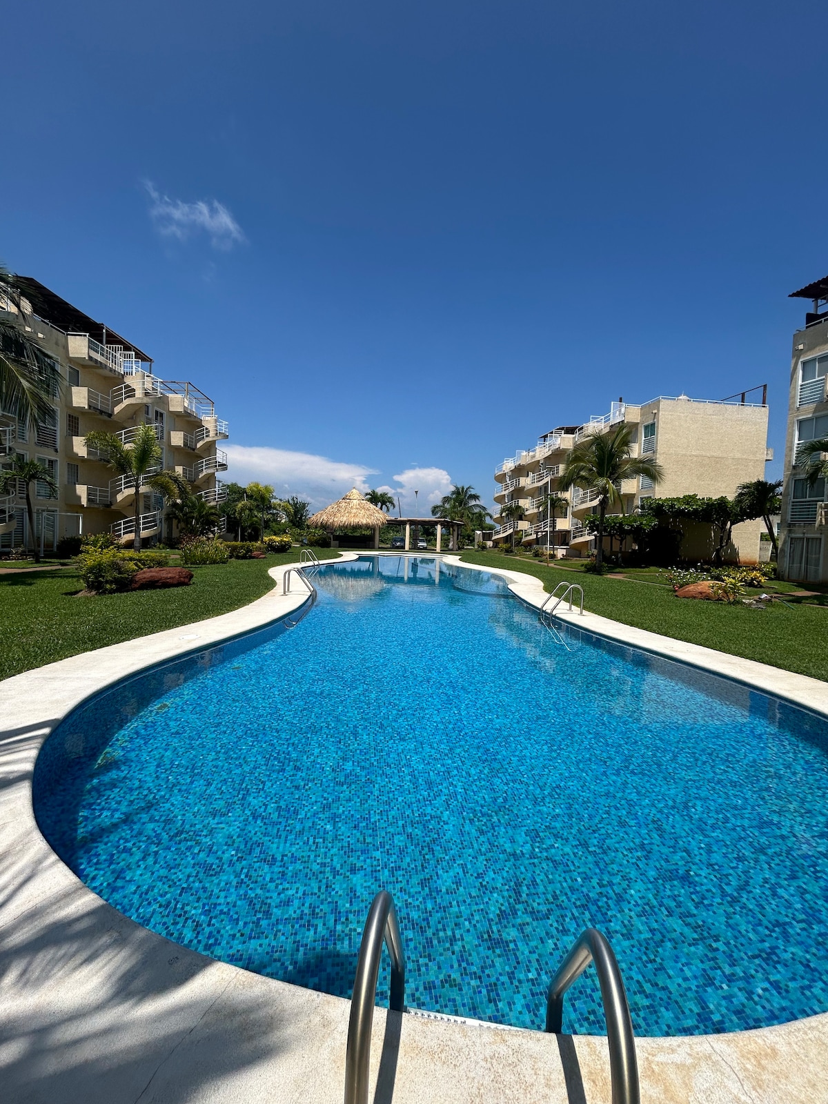 Disfruta un verdadero descanso en Acapulco Diamante dentro del exclusivo complejo Mayan Lakes. Departamento en planta baja, cómodo y equipado, ideal para familias y grupos tranquilos. Cuenta con internet 300 Mbps, 2 TVs con Roku (Netflix, Prime, Disney+, HBO Max y Crunchyroll), limpieza diaria, 2 cajones de estacionamiento y seguridad 24/7. Opcional: acceso a Mayan Palace / club de playa con costo adicional. Cuota acceso condominio: $320 + $10 por brazalete (no incluida).