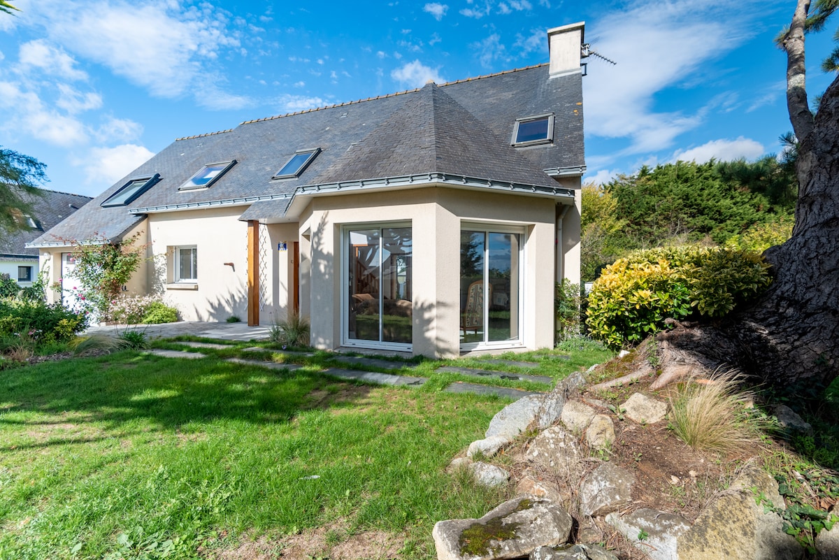 Dobro došli Pointe de Trévignon dođite i napunite baterije u sjajnoj prirodi okrenuta prema moru i ostrvima Glénan! Pješčane plaže „Trescao” i GR34 pješice . Trégunc 23 km, bit ćete razmaženi izborom za svoje šetnje Nedavna kuća ** * 7 osoba Zatvoreni vrt od 800 m2 vrlo mirna slijepa ulica. Kućni ljubimci su dozvoljeni . Wi-Fi , peć na drva. Velika igraonica s stolnim nogometom i društvenim igrama za mlade i stare. Pivovare , ribarska luka na 600 metara direktne prodaje. U blizini Concarneaua i Pont-Avena