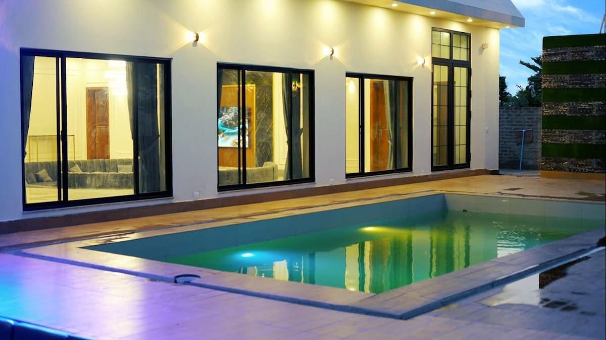 Pobjegnite u ovu vilu sa 6 spavaćih soba u DHA fazi 7, koja može primiti do 18 gostiju. Uživajte u elegantnim interijerima, 2 trpezarije, dvorani za događaje, teretani, Q-LED-ovima i vanjskom vrtu s roštiljem (prednarudžba). Dodatne usluge uključuju kuhara, vozača, vođene historijske obilaske i iznajmljivanje vozila. Samo 5 minuta od DHA Raya Dining Huba i 10 minuta od aerodroma, savršen je za porodični odmor, vjenčanja ili odmor. Skrbnici osiguravaju besprijekoran boravak. Vaš odmor iz snova vas čeka – rezervišite odmah!