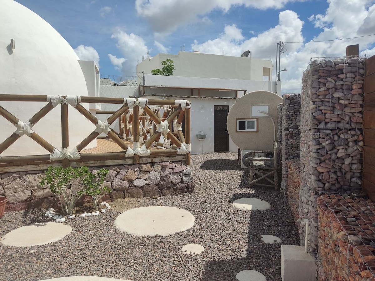 Mini smještaj kapsula, bračni krevet (udoban), minisplit (hladan), idealan za odmor i noć nakon posjete plažama La Paz, Wi-Fi, privatni WC i tuš (dva metra od bačve), samostalni dolazak (kutija za ključeve), unutrašnji parking, mali prostor, idealan za one koji čine turizam i žele se odmoriti u čistom, udobnom, pristupačnom i... drugačijem!! Njegov dizajn je zabavan i izvan običnog smještaja.