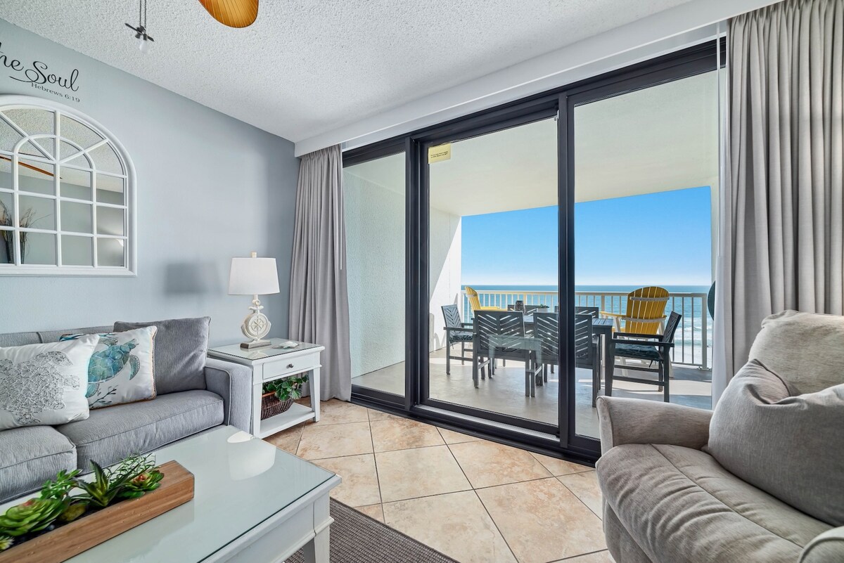 1 bedroom -king bed- beachfront condo on the 7th floor that sleeps 4 with a queen pull out sofa sleeper. Take in a stunning direct view of the gulf from the balcony. Full kitchen, washer/dryer combo, internet, cable TV (Roku apps) with smart televisions. Wake to waves, spot dolphins from the balcony, and walk across the road for shopping and dining. Relax at the beachfront pool with private boardwalk access to the sand. Clean, cozy, and just steps to the Gulf—your ideal beach getaway!!
