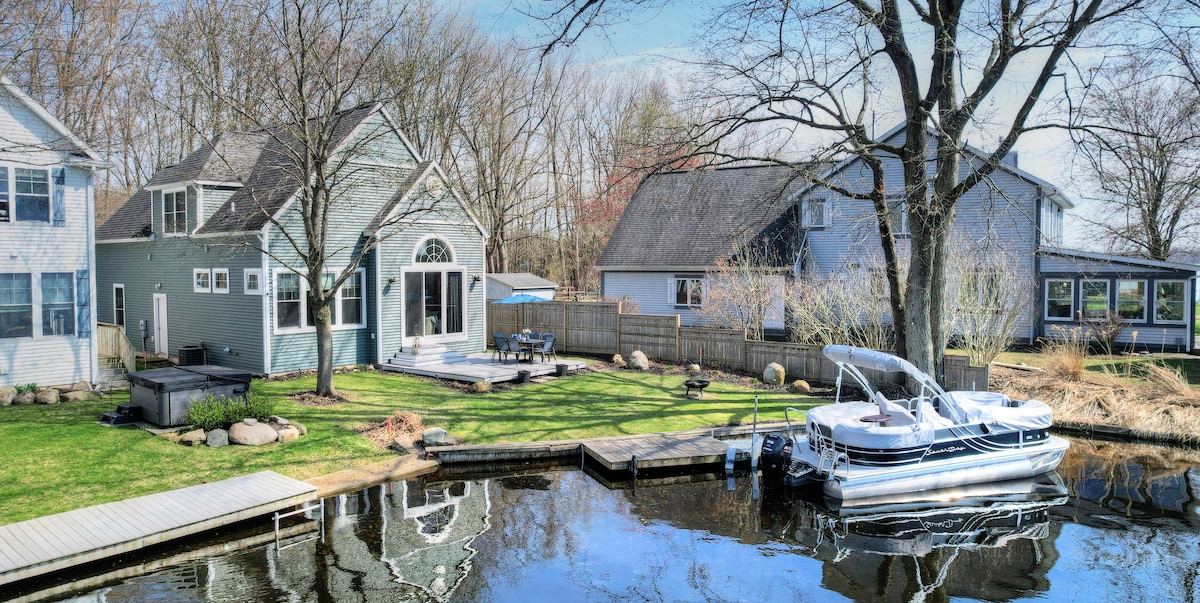 Novi vlasnici! Ažurirani dekor, mnogo novih poboljšanja kao što su nova posteljina, frižider, aluminijski sto za piknik, ležaljke, ognjište itd. To je savršeno mjesto za opuštanje i uživanje u odmoru. Nalazi se 5 milja od kazina Gun Lake i samo 5 kilometara od Bay Pointe Inna. Gun Lake je sportski raj na jezeru s ribolovom, tubingom, plivanjem, skijanjem ili samo plutanjem! Jedinica za iznajmljivanje uključuje vez za brod. Kada sunce zađe, okupite se oko privatnog ognjišta i uživajte u pogledu. Ima Wi-Fi.